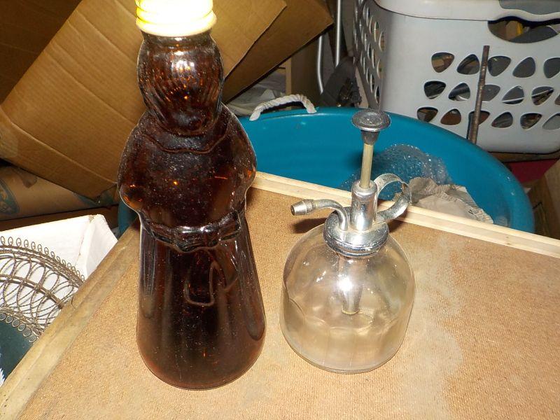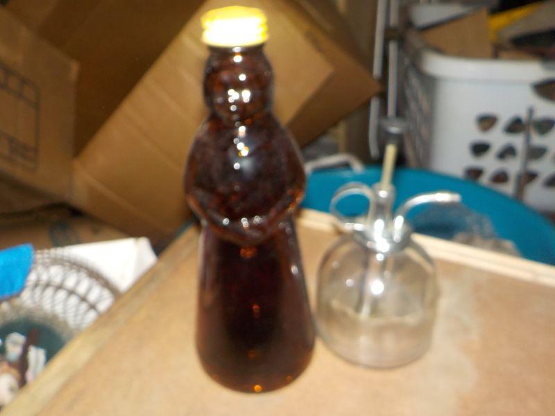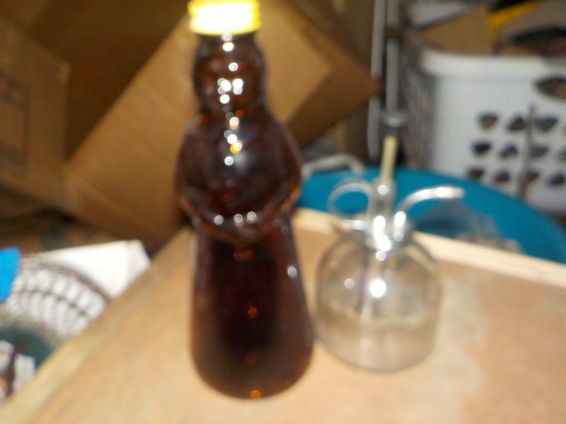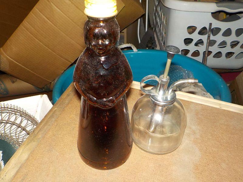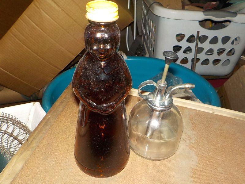 Vintage containers " Maple Syrup and 1900's hand pump hand sprayer.