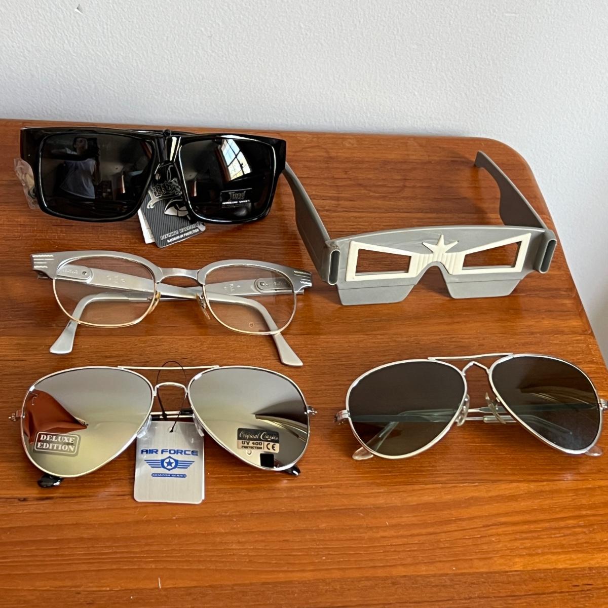 2 vintage 50’s 60’s. 2 contemporary aviators and 1 contemporary Locs. 2 pairs new with tags.