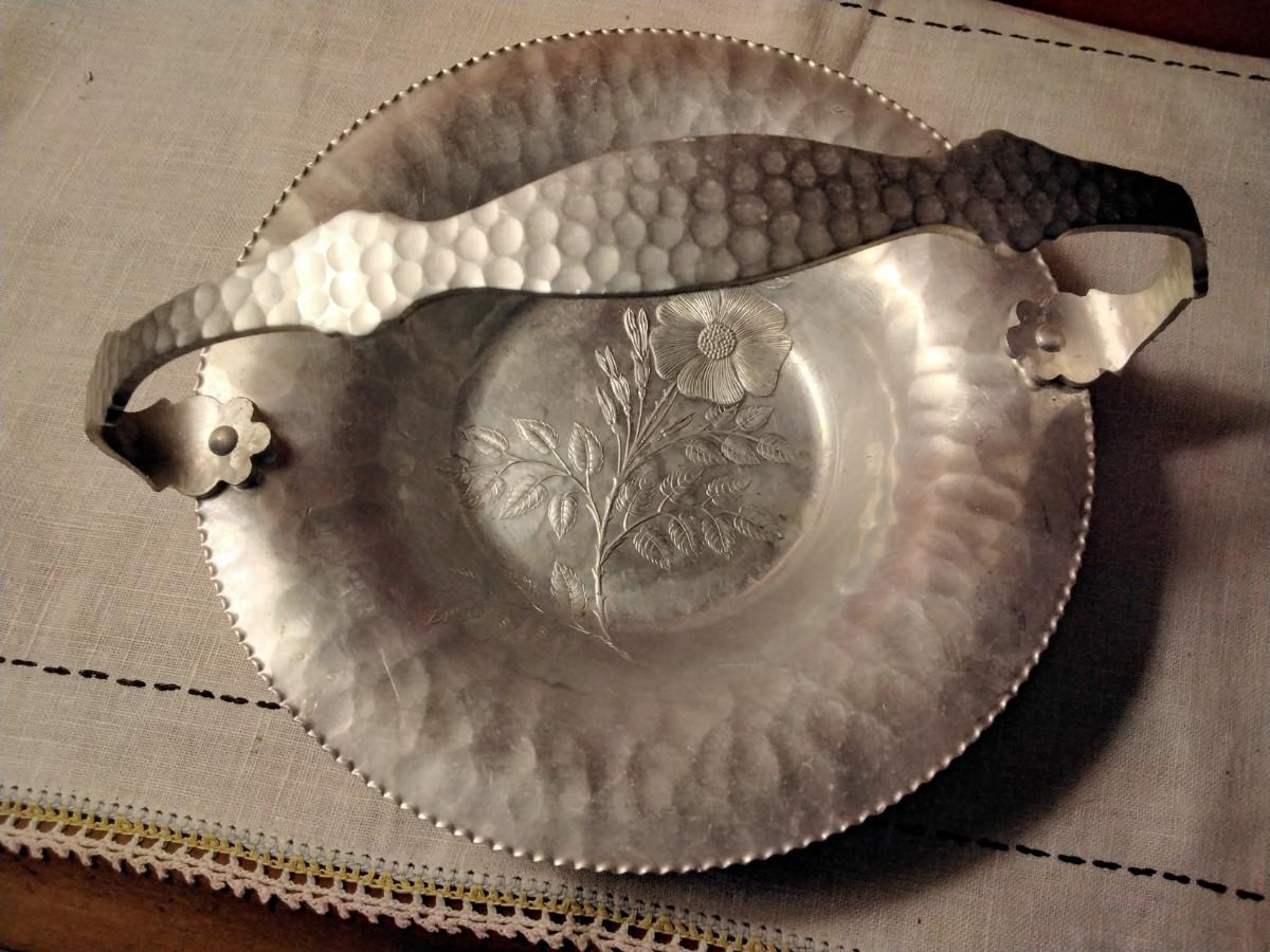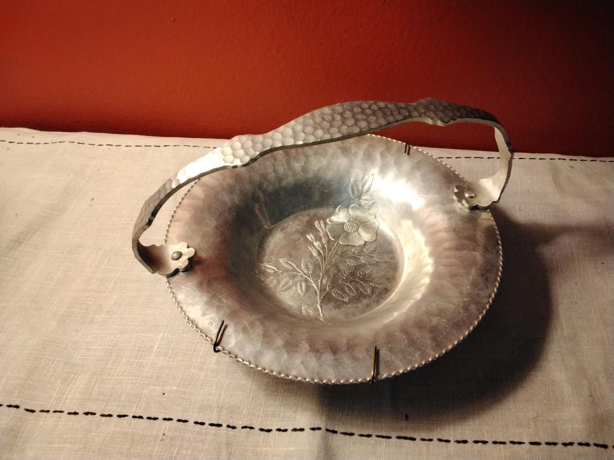 Vintage Continental Silver Co Brilliantone Wild Rose 1088 Aluminum Basket 8"