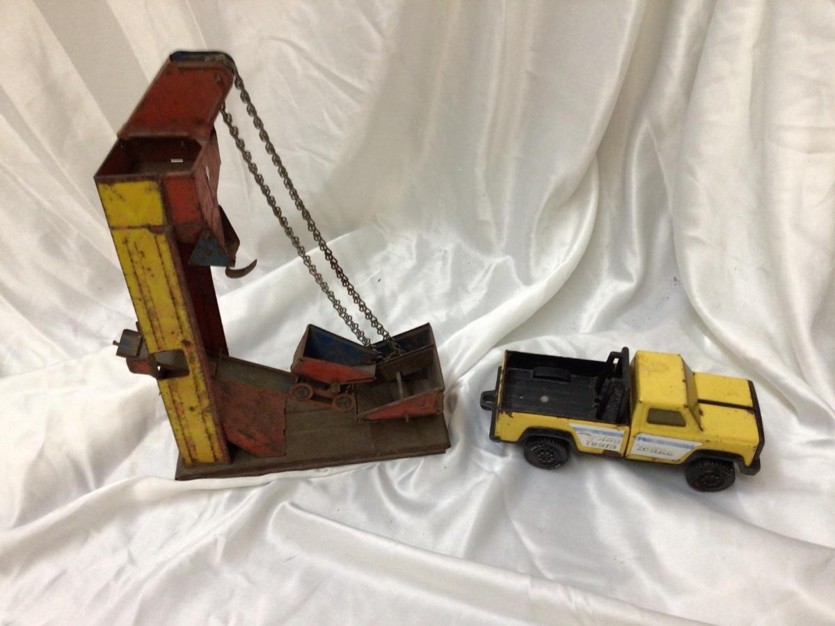 Vintage Conveyor Belt Scoop Metal Toy And Tonka Pickup Truck