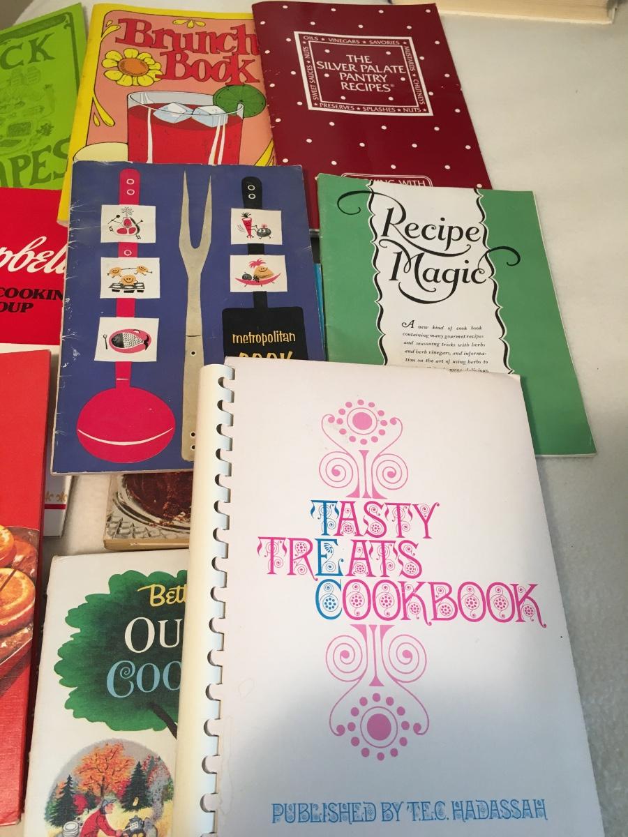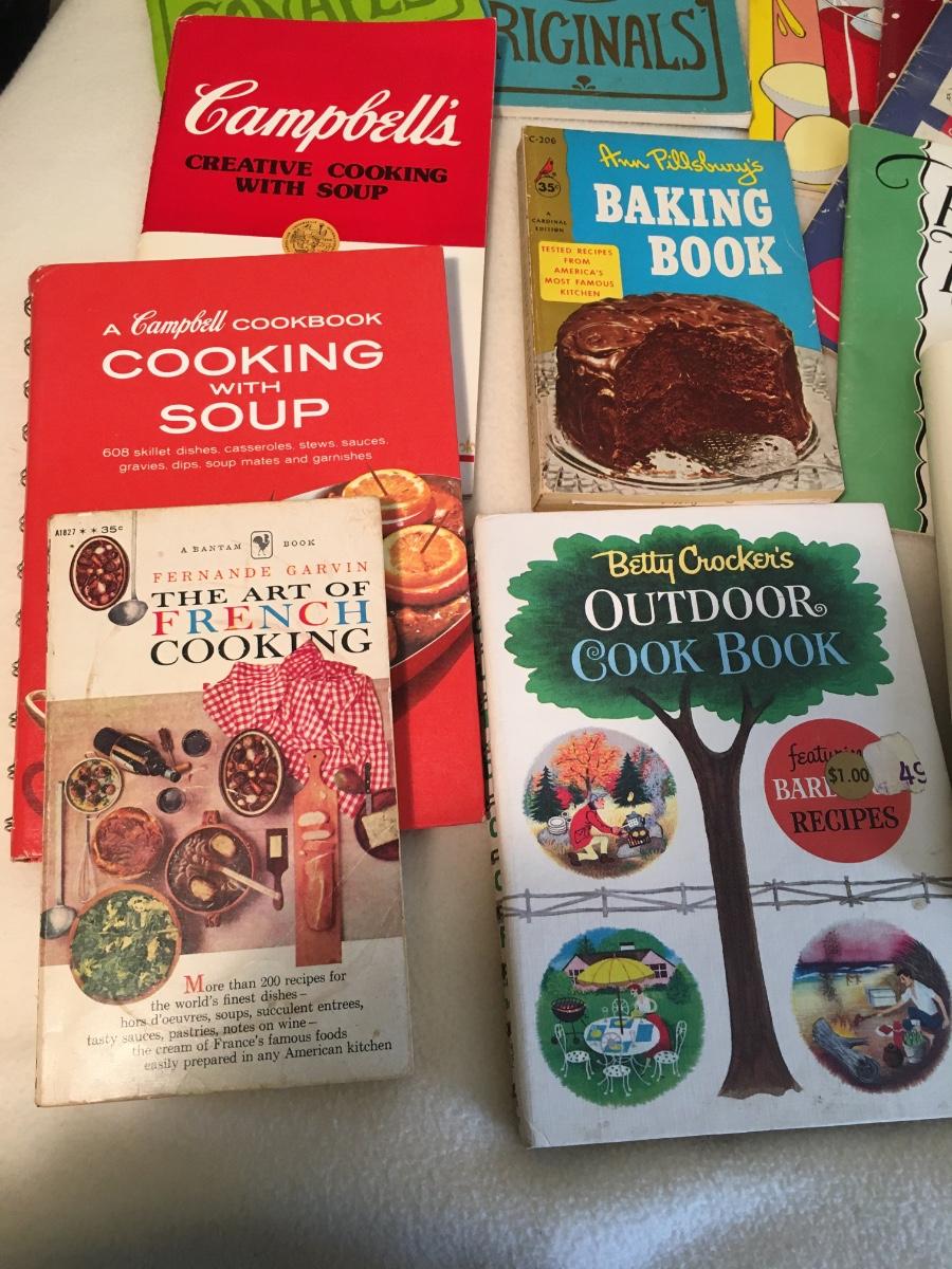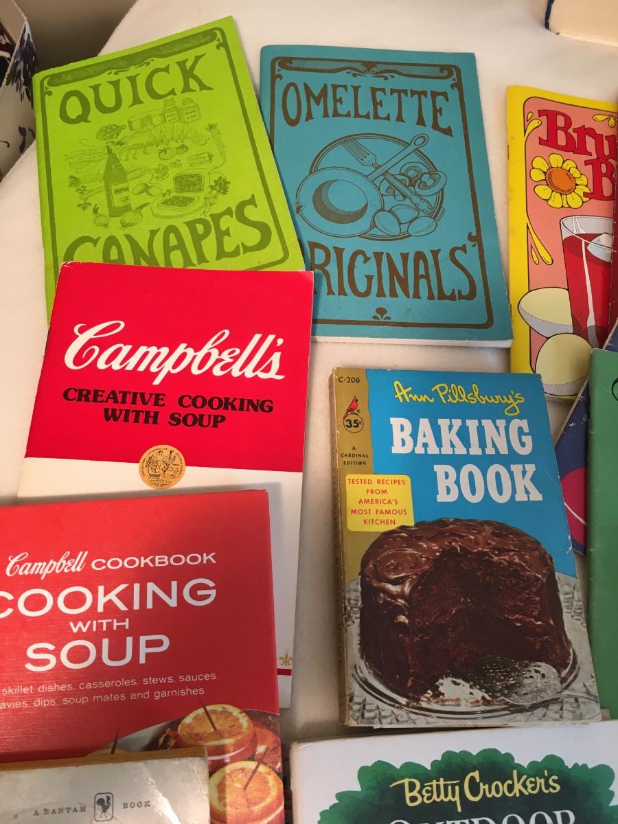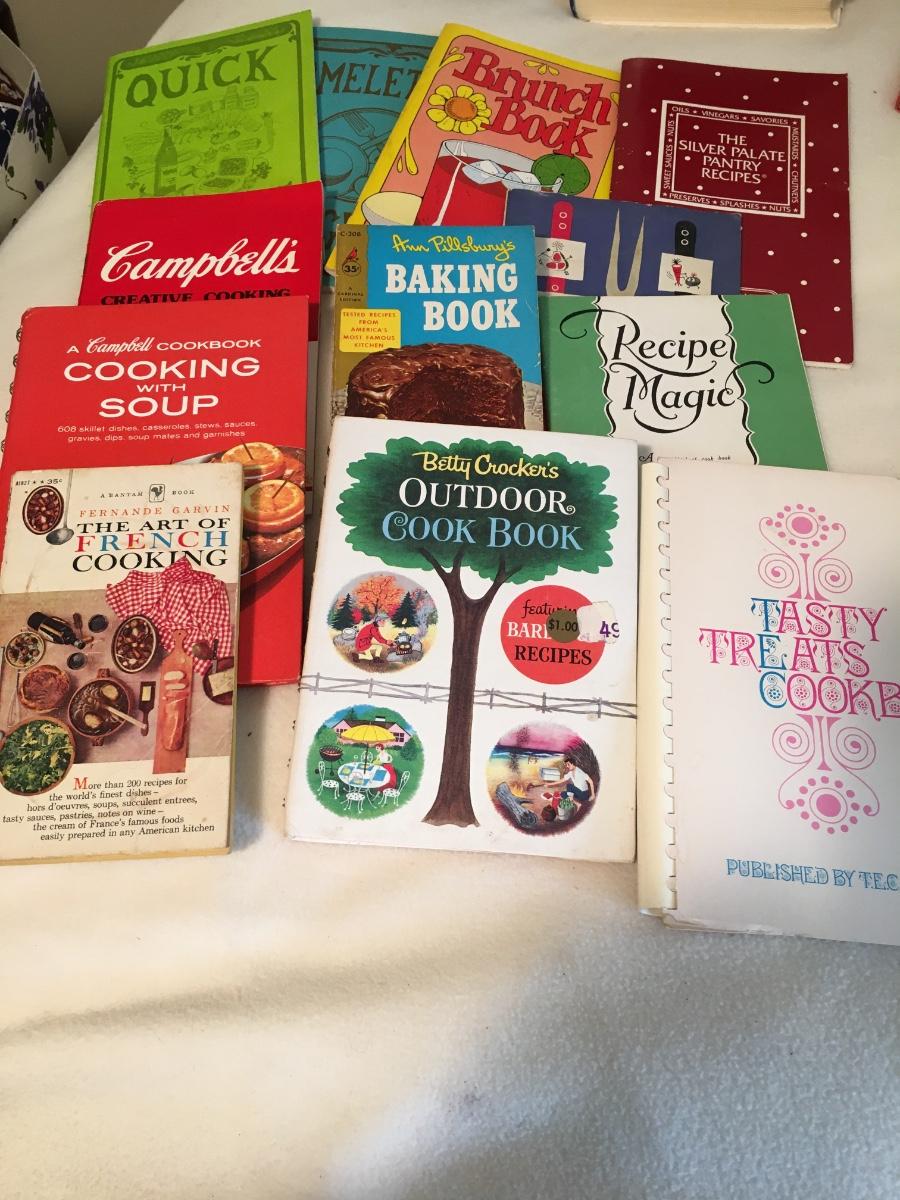 assortment of vintage cookbooks. Cook like you grandparents did, or just laugh at what used to be called 'dinner'!