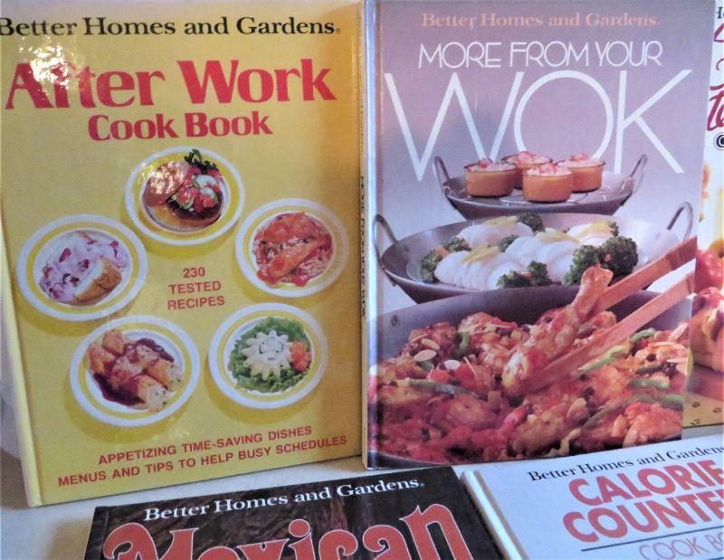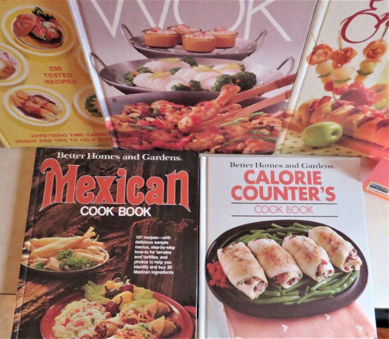 Vintage (5) Better Homes & Gardens Cook Books, Mexican, Entertaining, WOK, Healthy foods. year 1974 to 1983 LOT