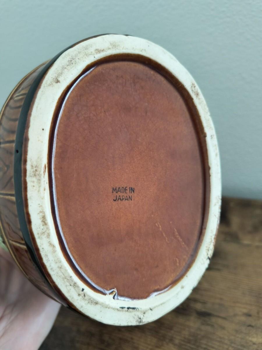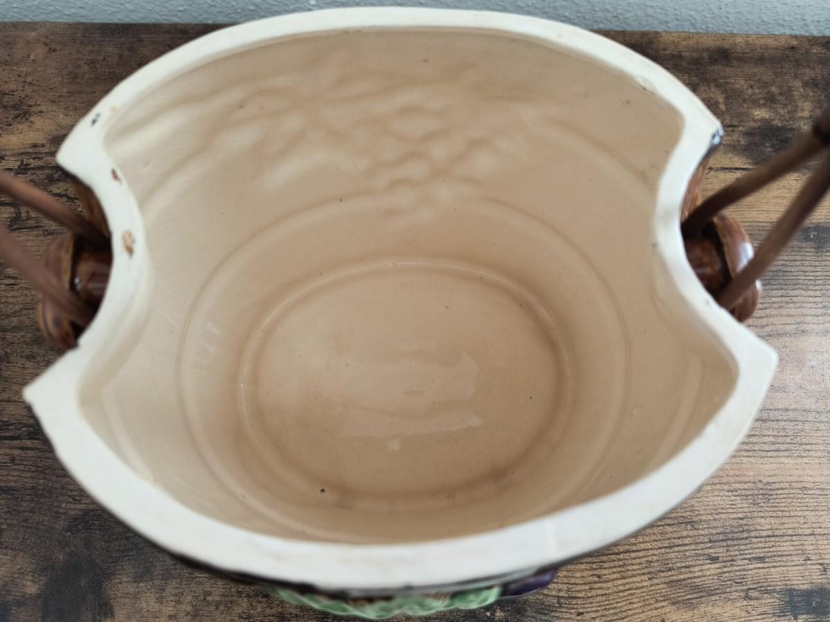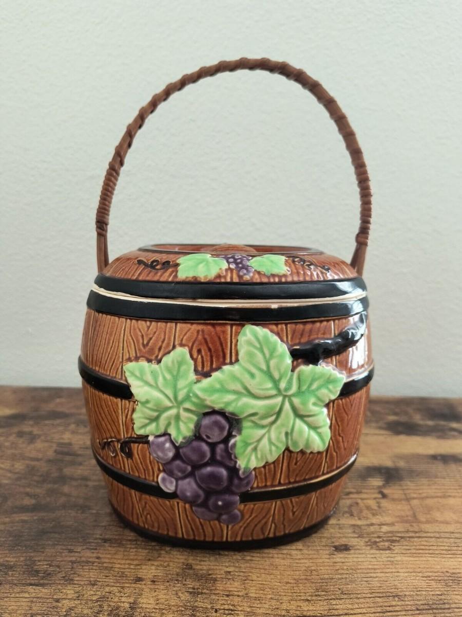 Vintage cookie biscuit jar w/lid grapes floral w/ wicker handle hand painted, made in Japan