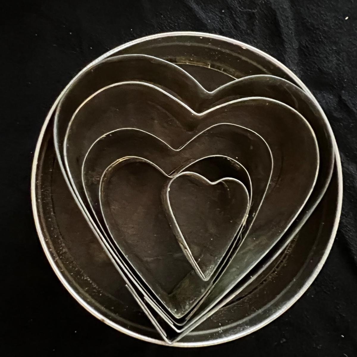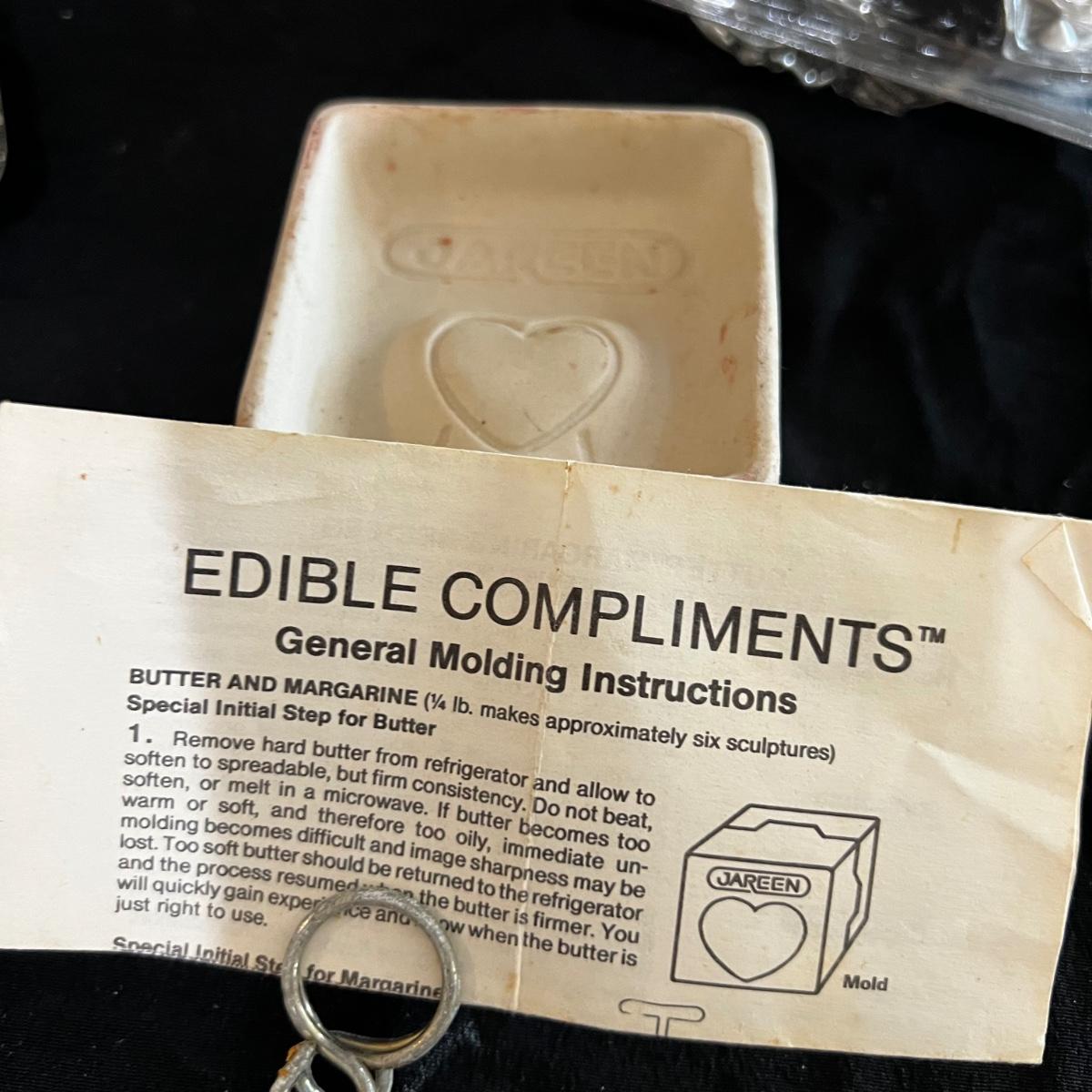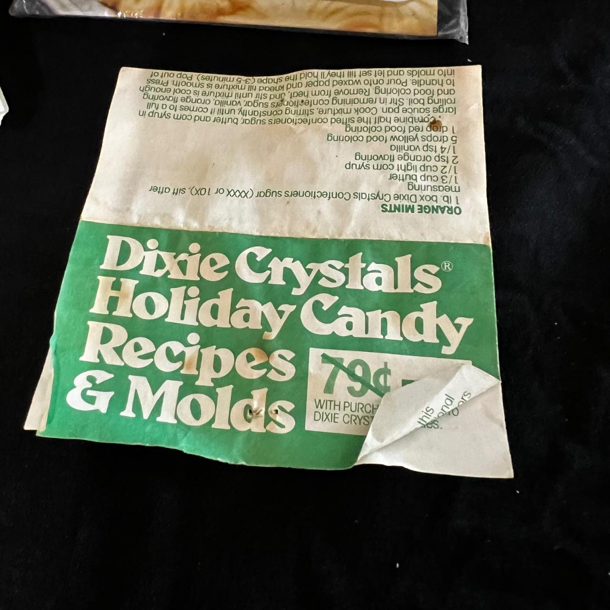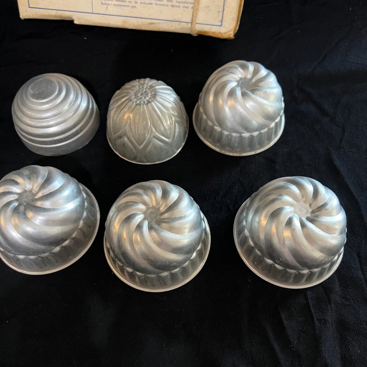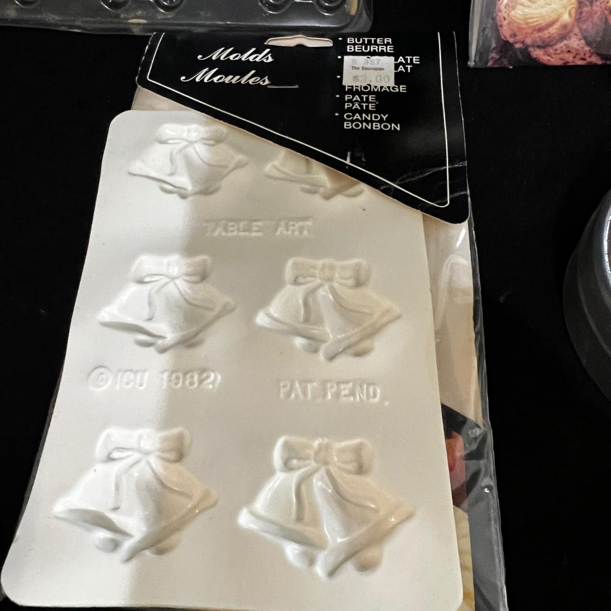 130+ vintage cookie cutters of all sizes, for all occasions and many, many shapes. Three piping cookie presses with 11 shapes and eight tips as well as a bag. Also included are 60+ tartlet tins. Butter molds and candy molds as shown.