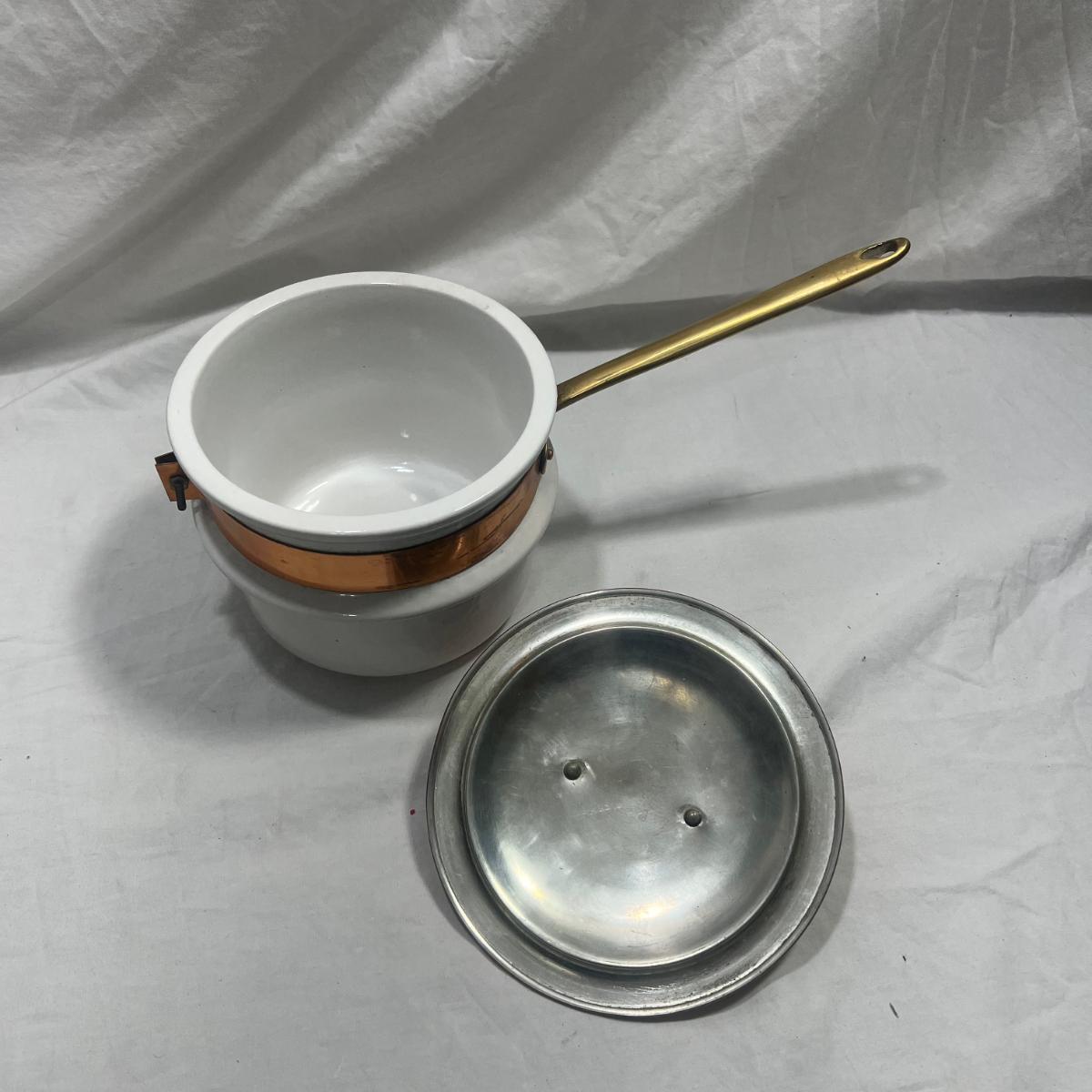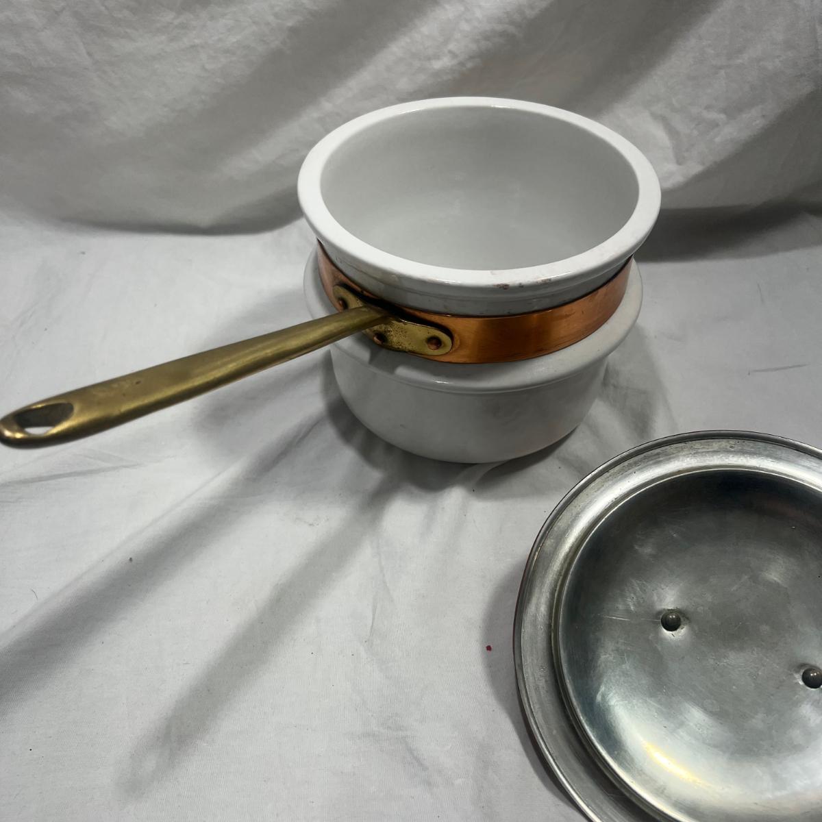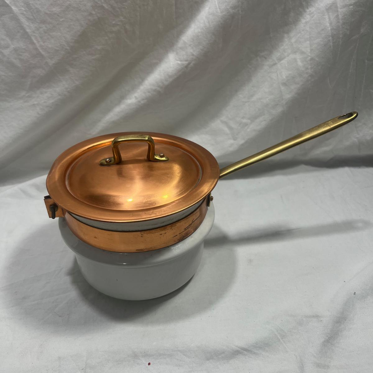 Vintage Cooking pot with copper lid. originally designed to be a double boiler but missing bottom pot but still can be used as a normal pot