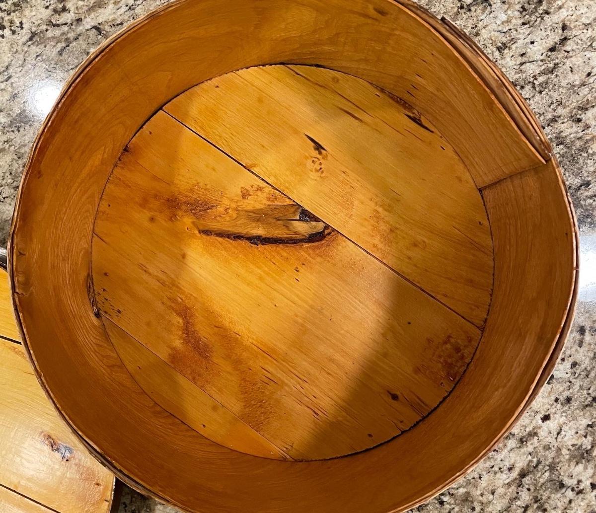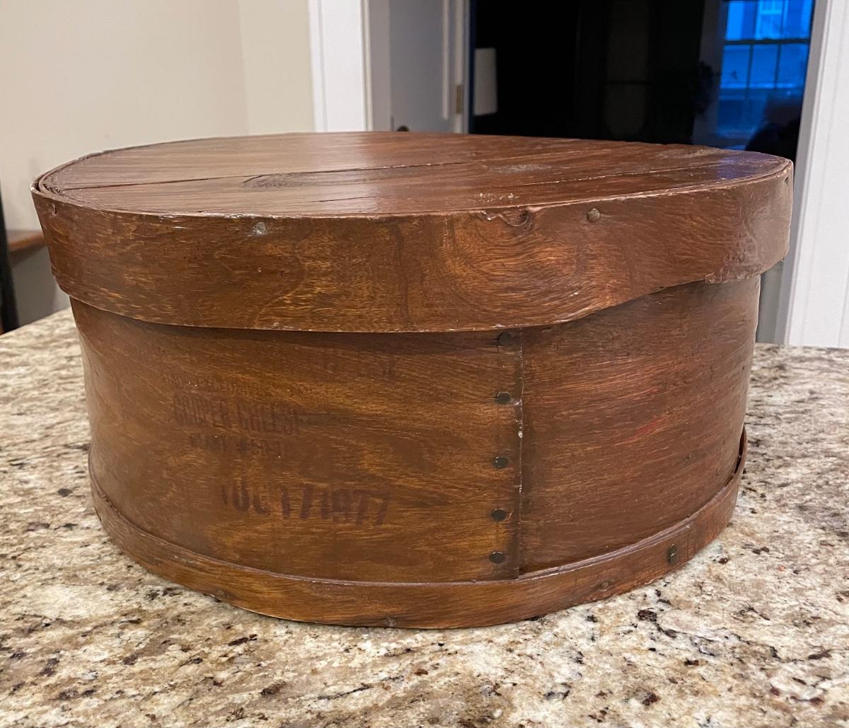 Measures 15.5” wide by 7” high. Very nice condition except for one small break on edge of lid. It looks at though someone has either painted it or polyurethaned it at some point. Fantastic decorative piece!