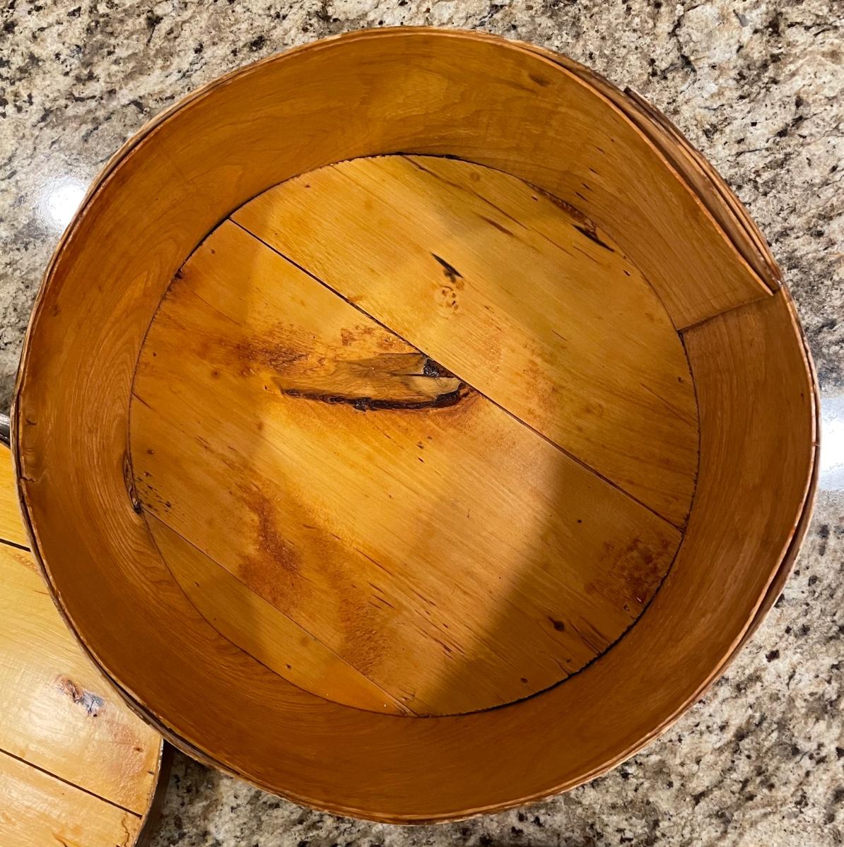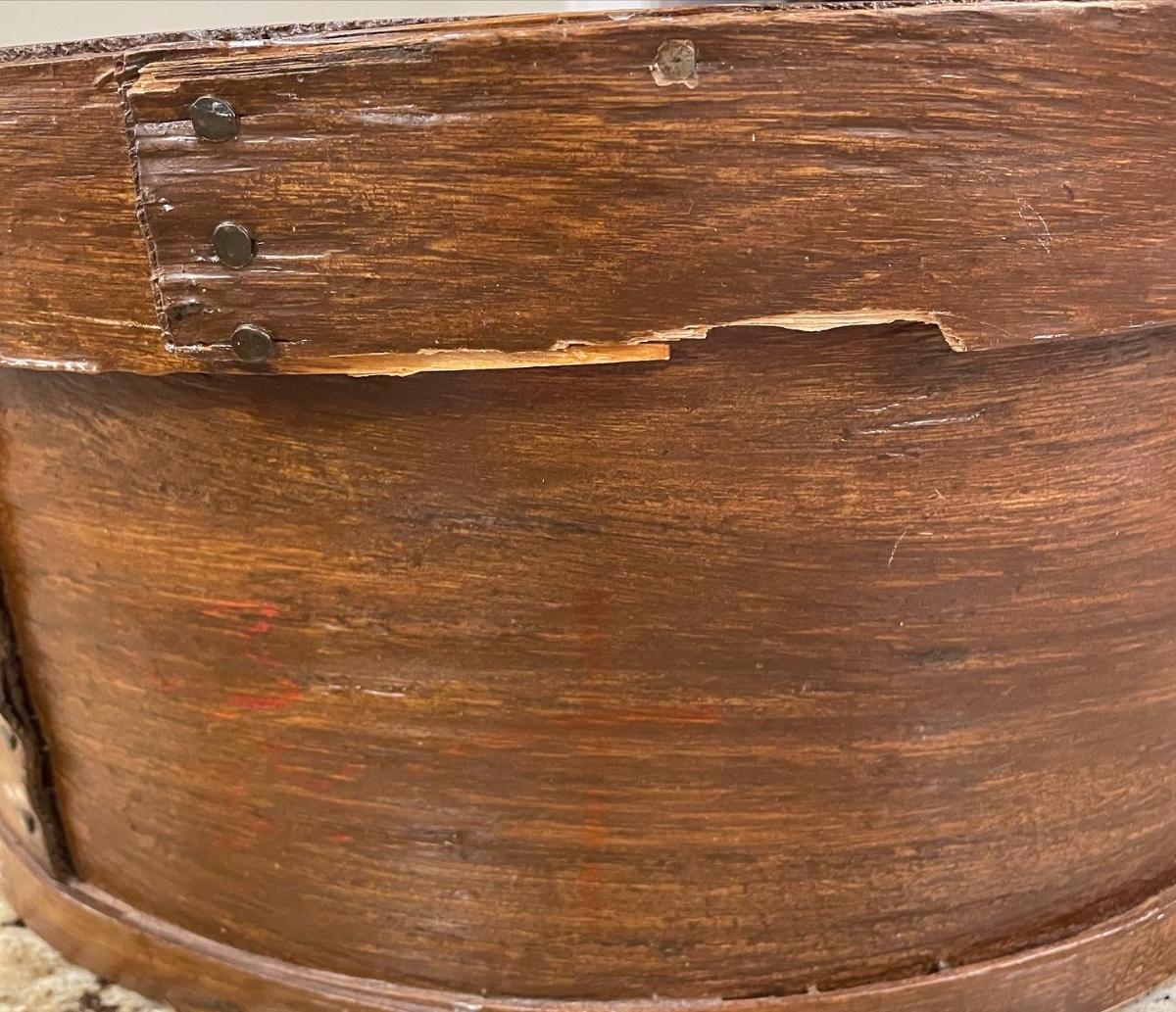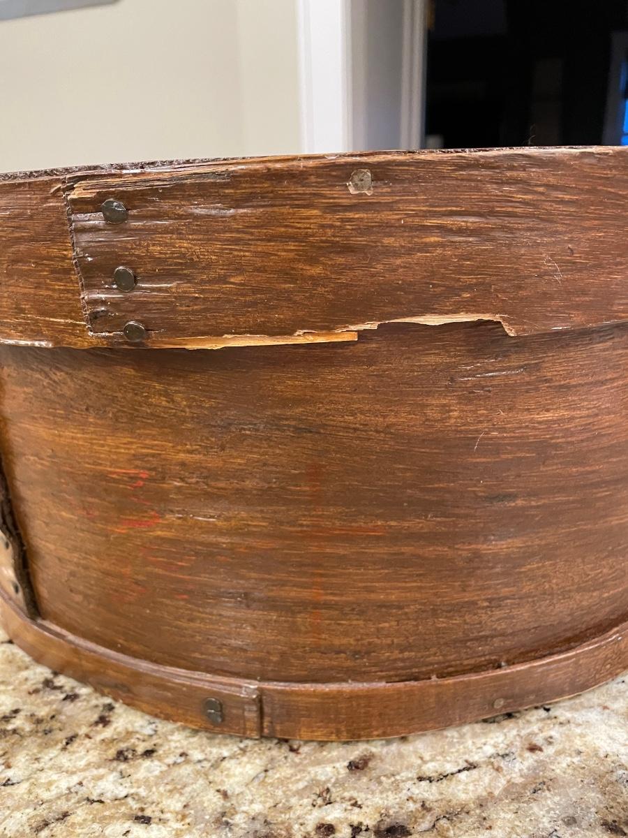 Measures 15.5” wide by 7” high. Very nice condition except for one small break on edge of lid. It looks at though someone has either painted it or polyurethaned it at some point. Fantastic decorative piece!