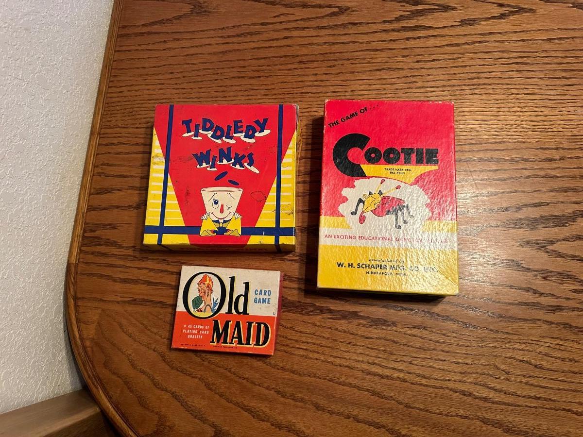 VINTAGE COOTIE, TIDDLEDY WINKS, & OLD MAID IN VERY GOOD CONDITION