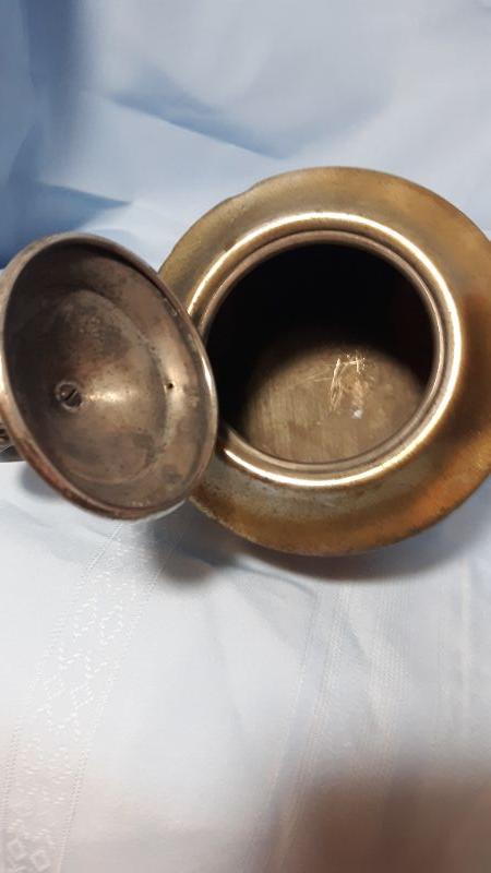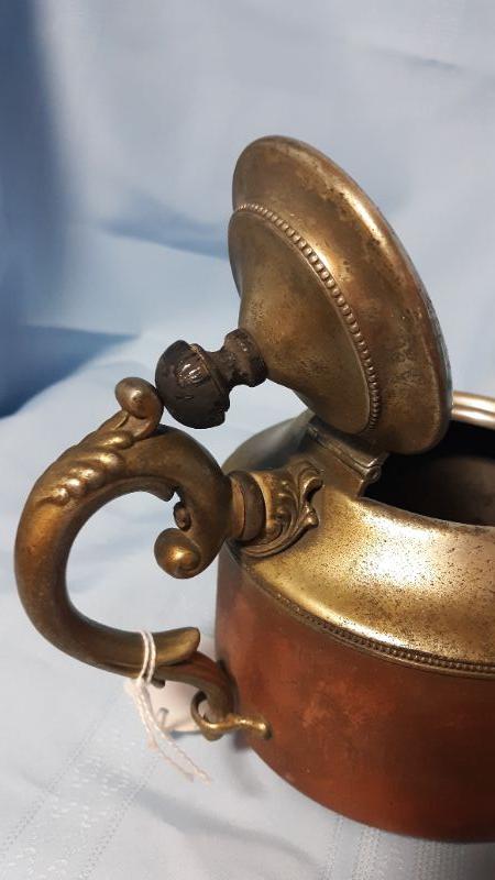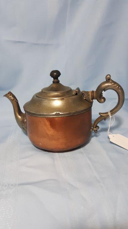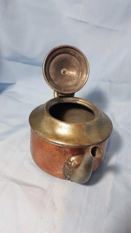 Vintage copper and steel kettle, hinge in excellent condition, body 4"H x 5.5"W