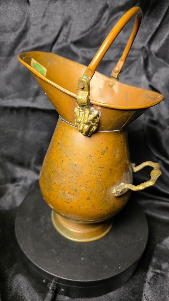 Vintage Copper & Brass Coal Scuttle – Lion Head Handles, Victorian Hearth Bucket