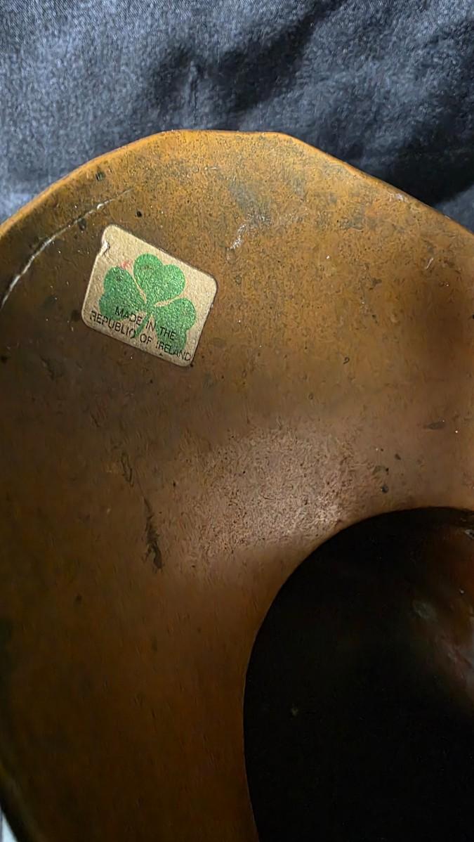 A “Made in the Republic of Ireland” label remains intact, providing a charming provenance detail that anchors this piece in traditional European metalwork heritage. Bold, decorative, and endlessly versatile, it’s the kind of object that quietly elevates a room while telling a story of utility turned artistry.