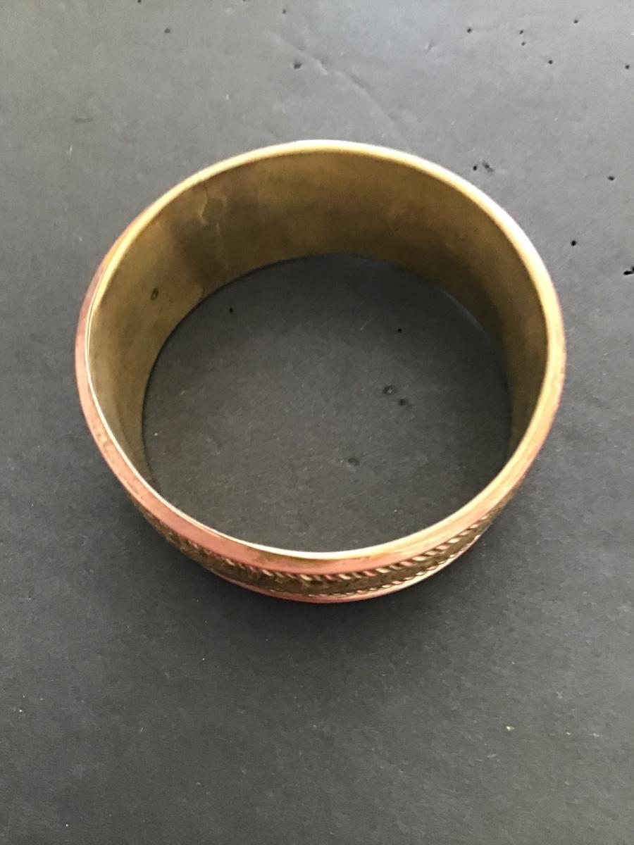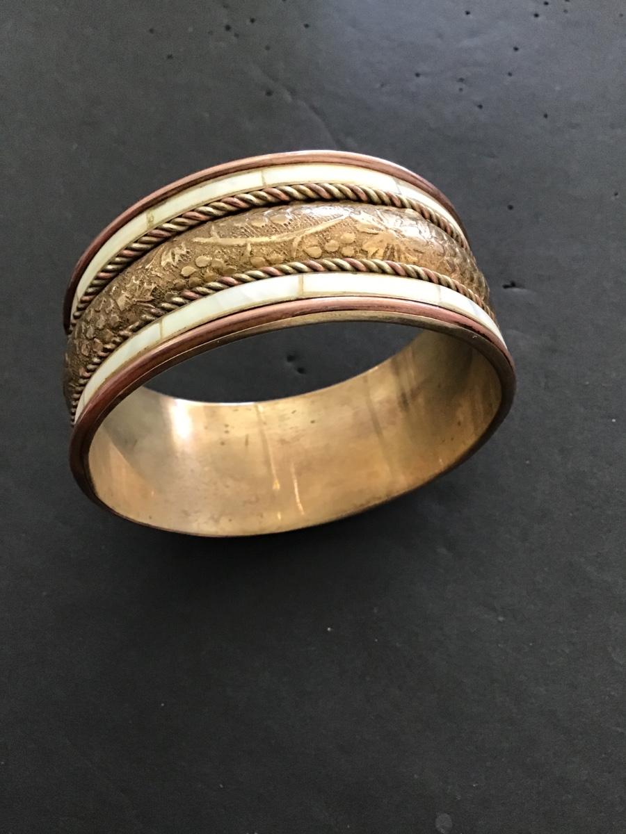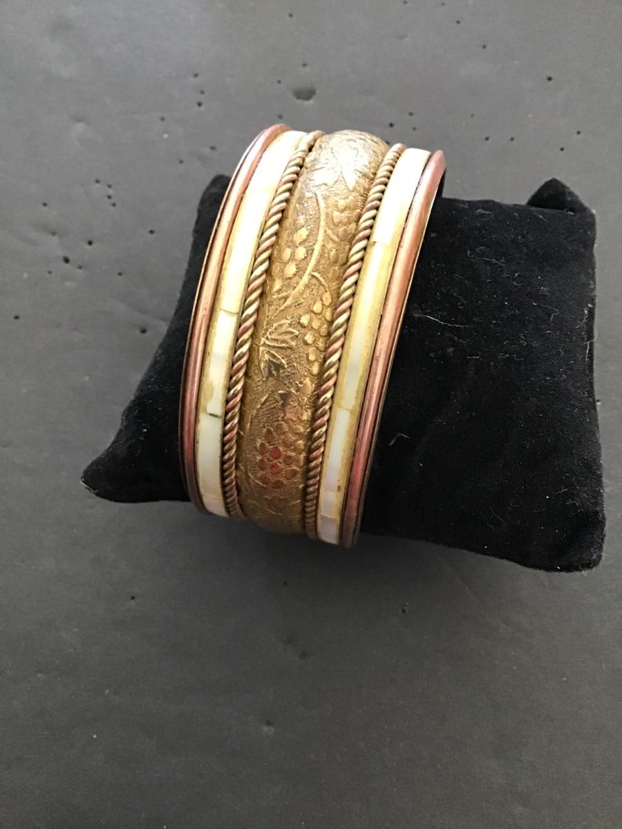 Vintage, copper and brass and mother of pearl bracelet. Please see attached photos.