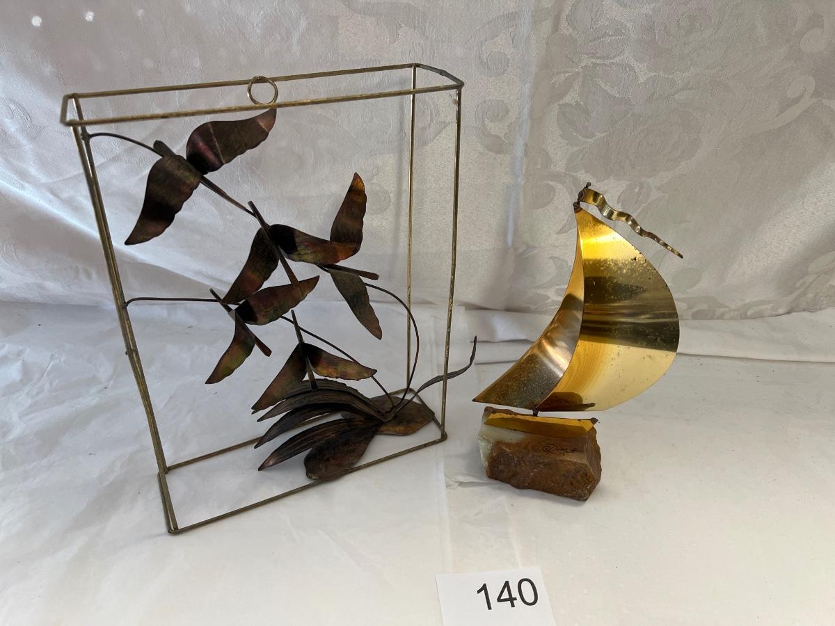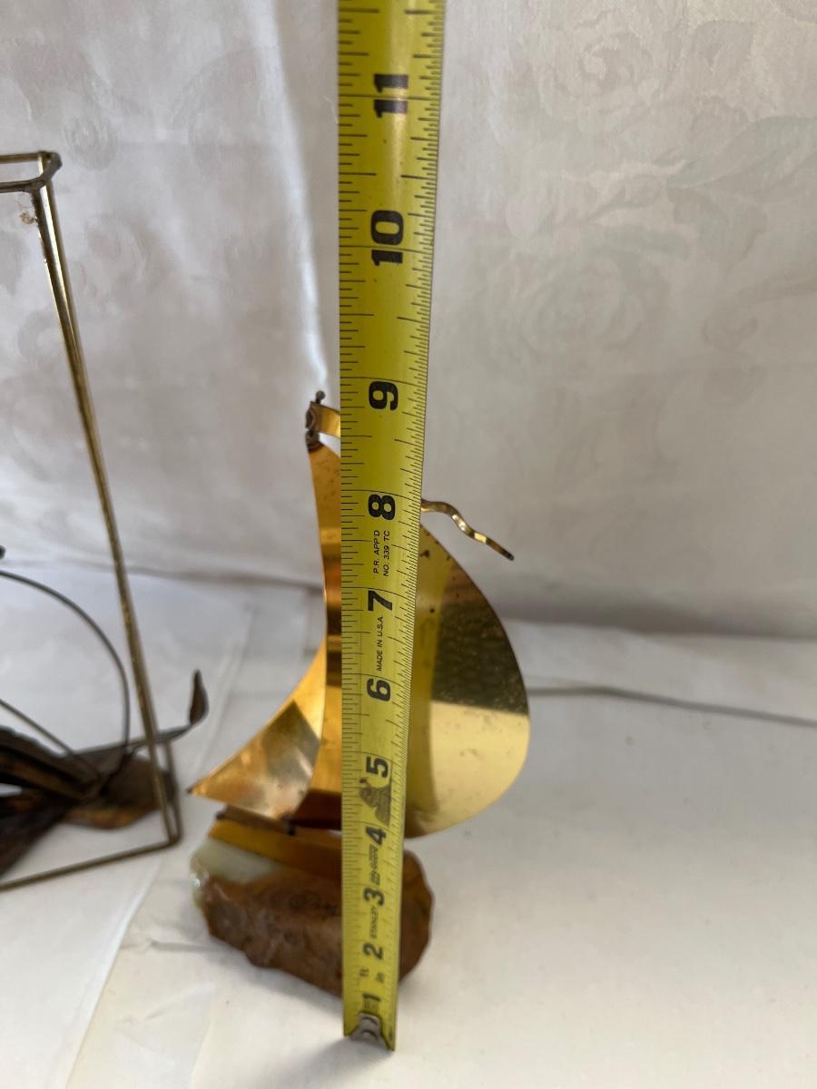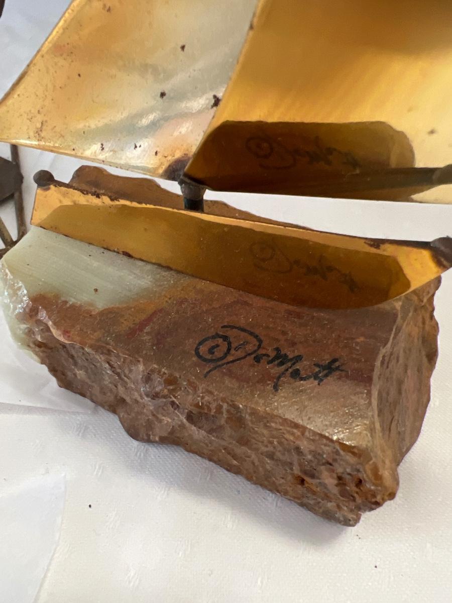 Vintage DEMOTT Brass Sailboat Metal Sculpture signed on Base rock