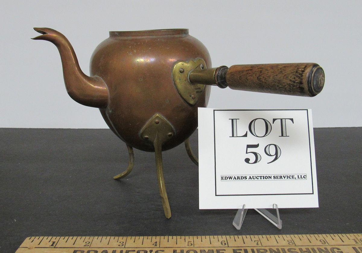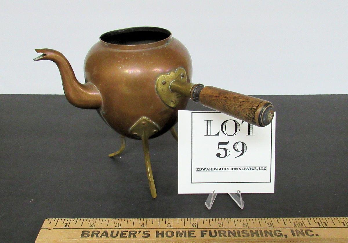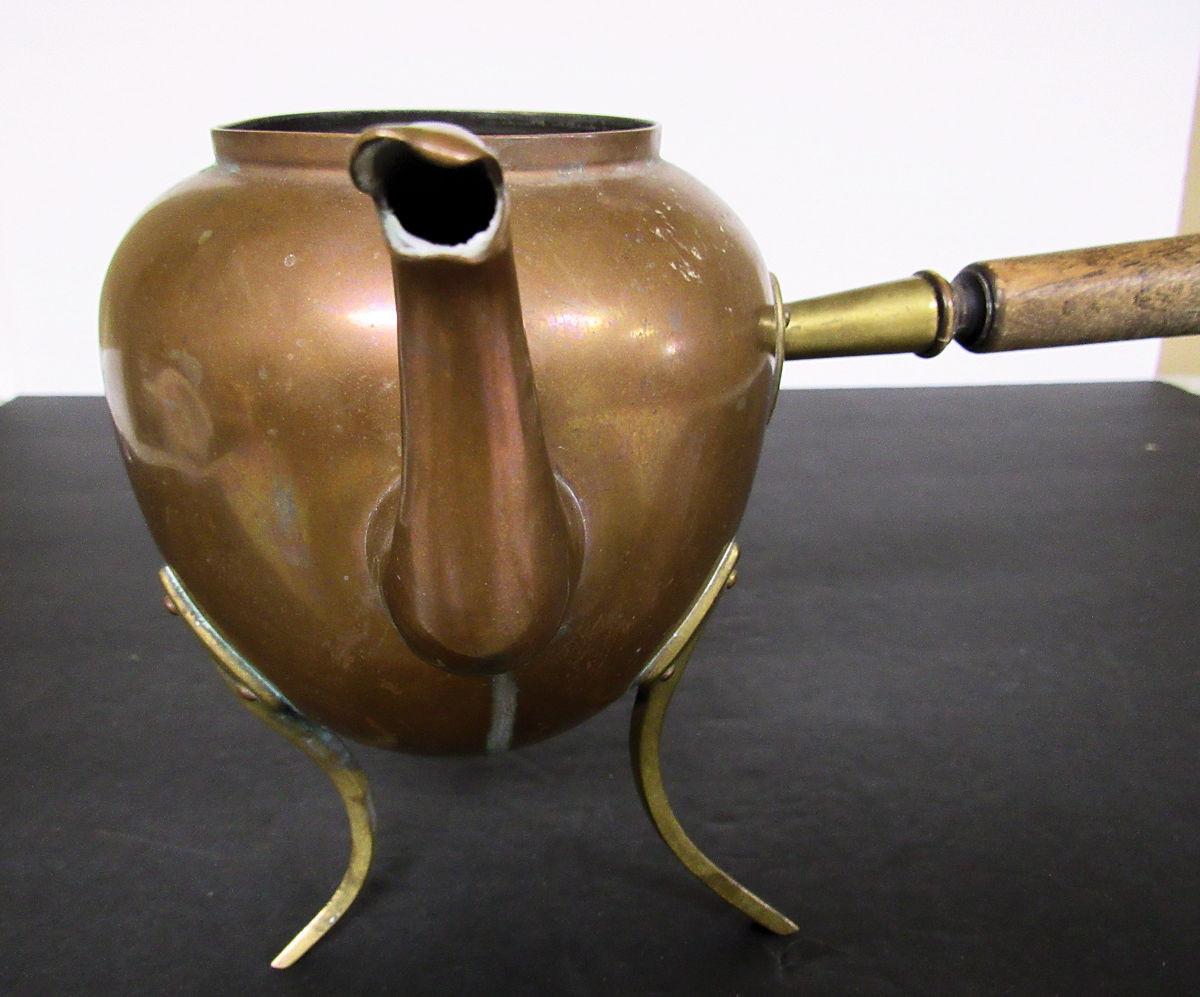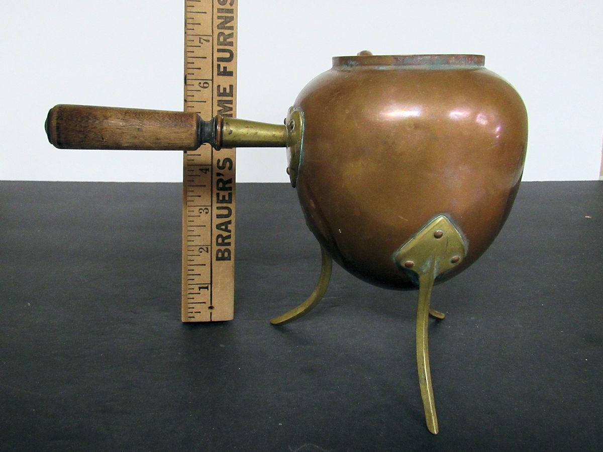 Vintage Copper Footed Pot, Brass Trim, Riveted, Wood Handle, England, No Cover