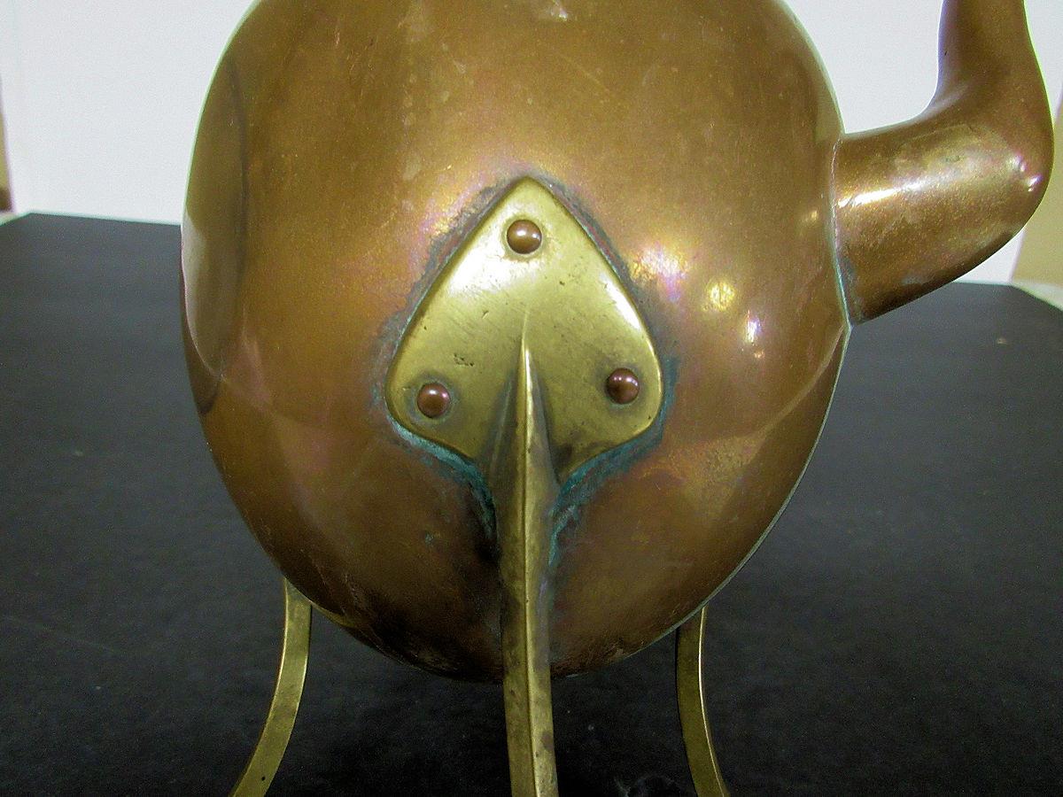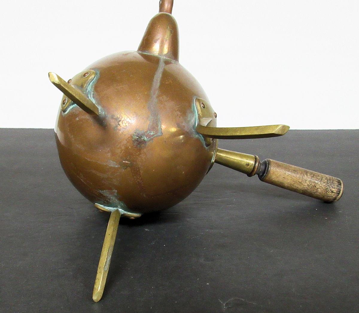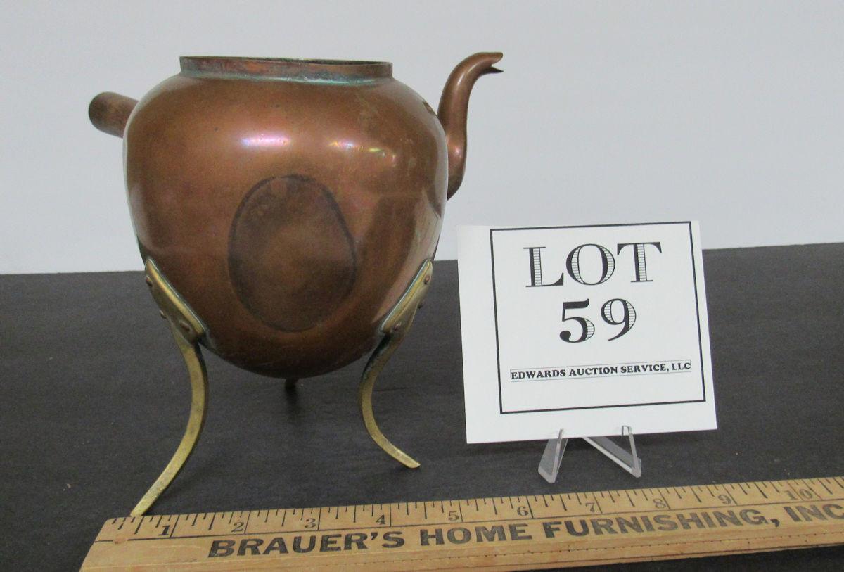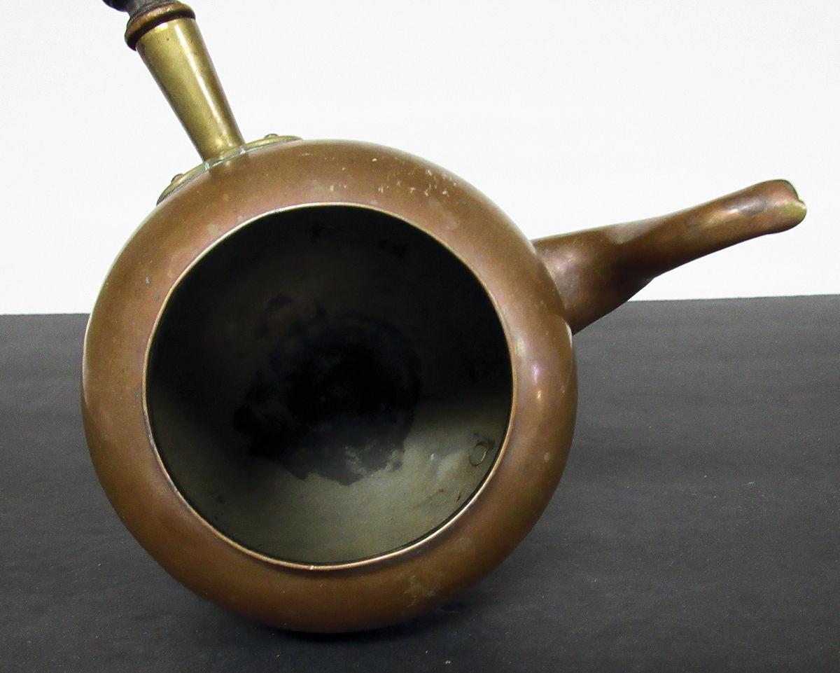 Vintage Copper Footed Pot, Brass Trim, Riveted, Wood Handle, England, No Cover
