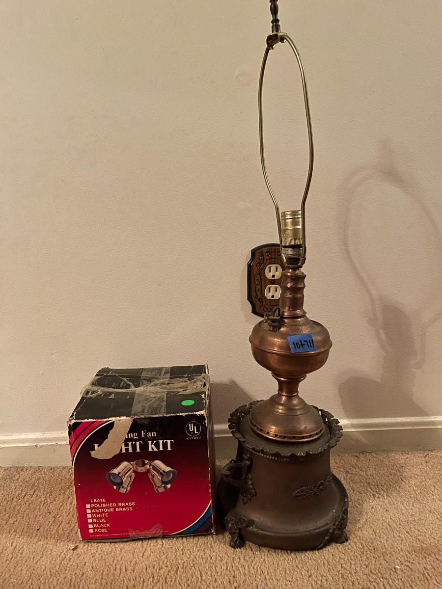 Tall vintage copper lamp "as is", ceiling fan light kit.