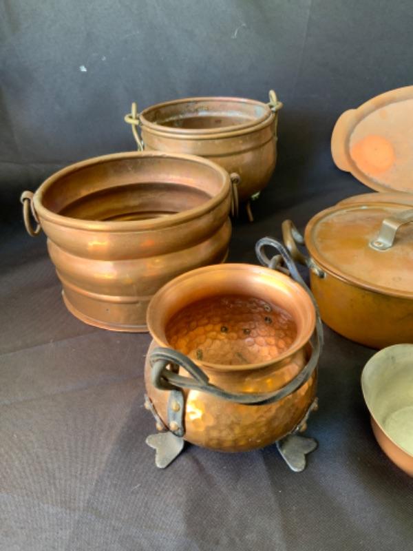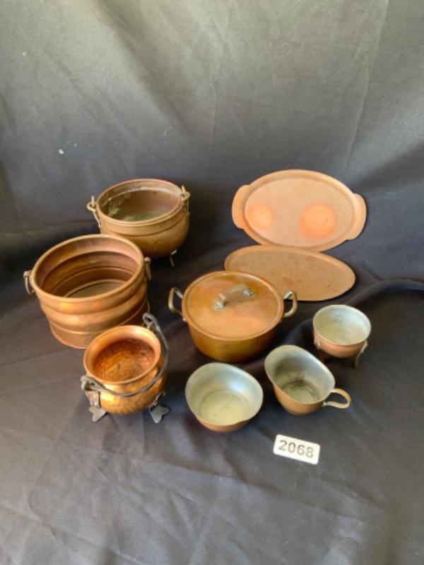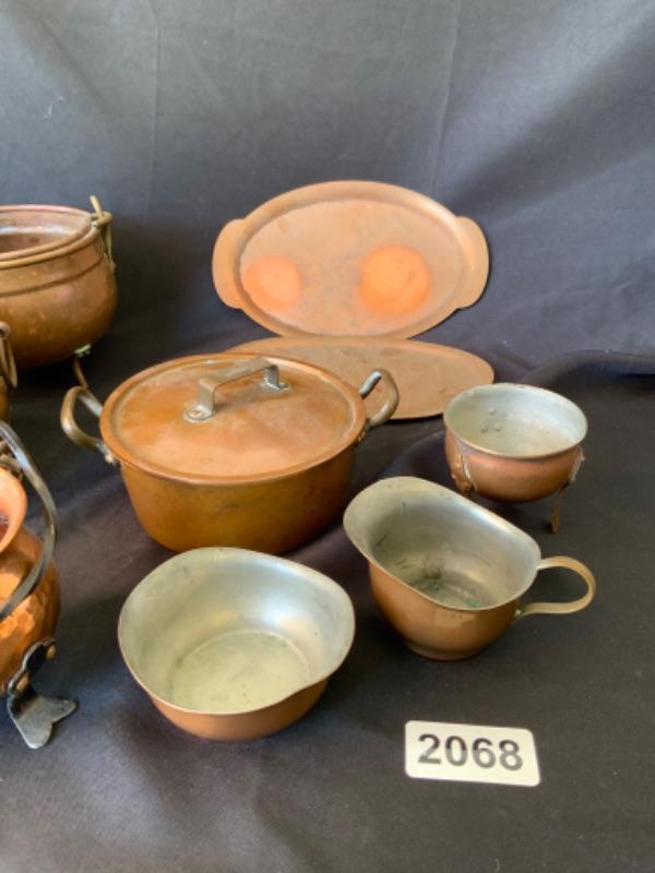 Vintage copper plates, cups and bowls Lot 2068