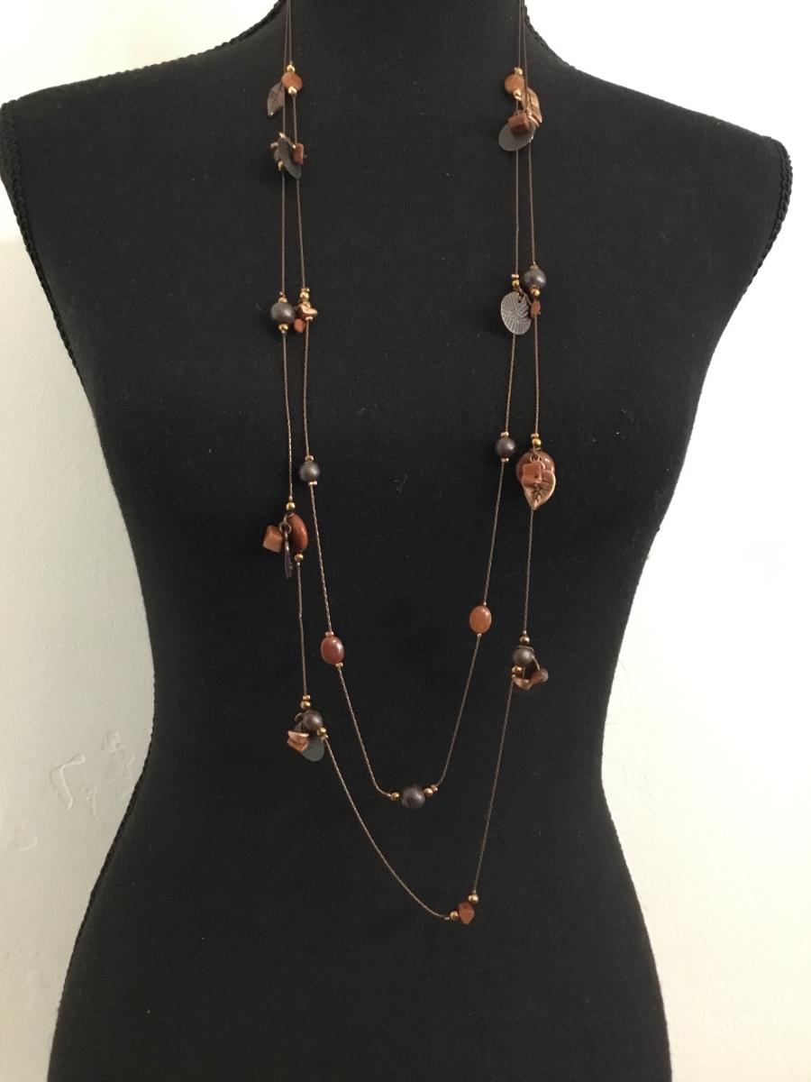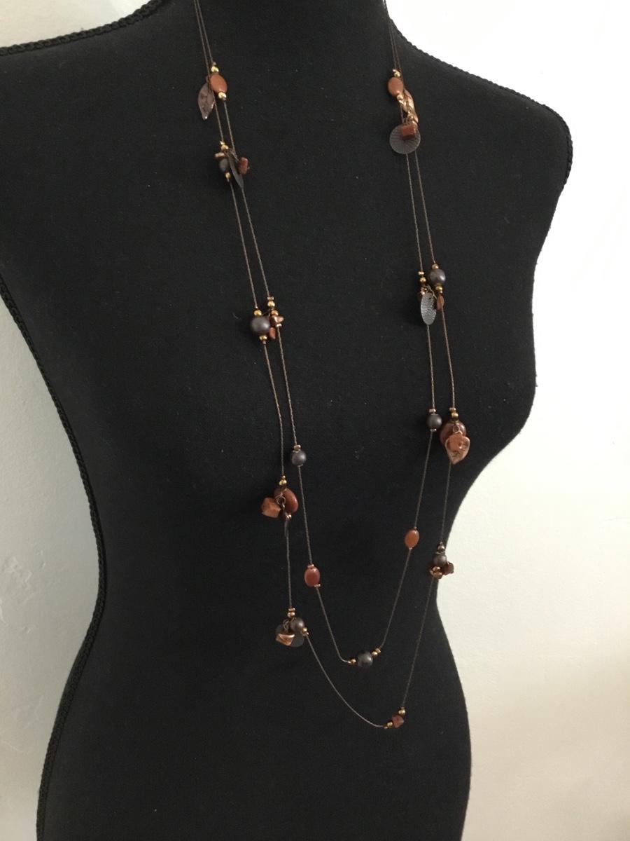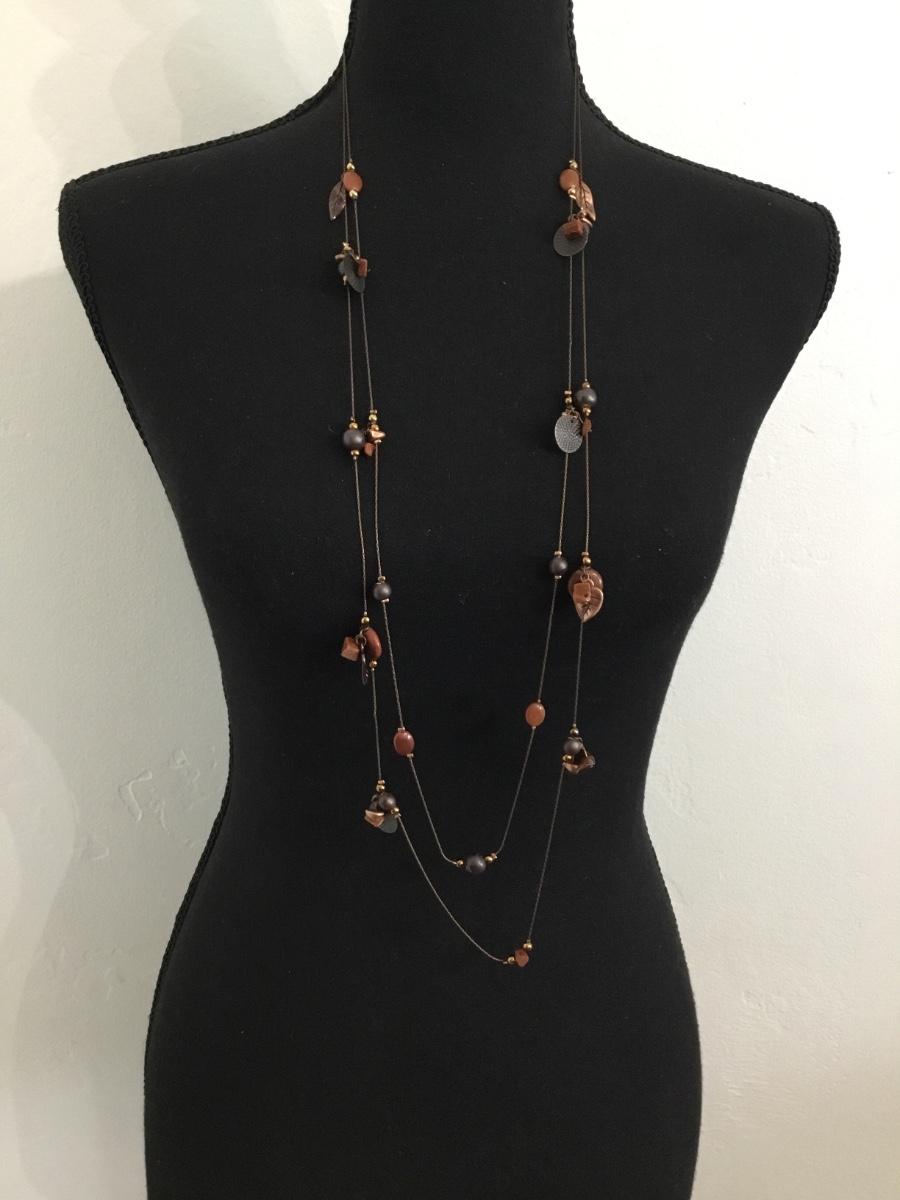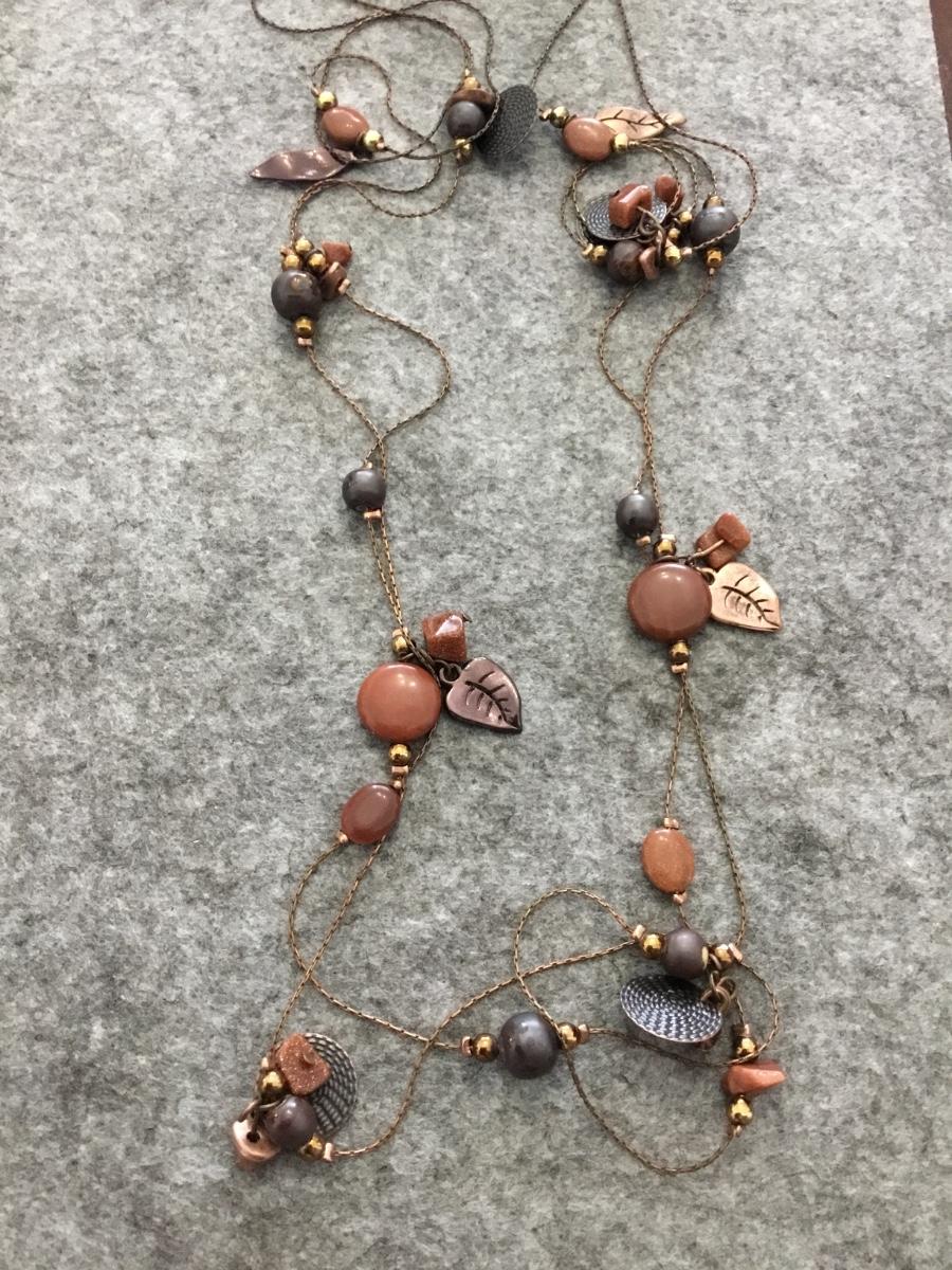 Vintage, copper tone, sun, Sandstone, and wooden bead, multi layer necklace