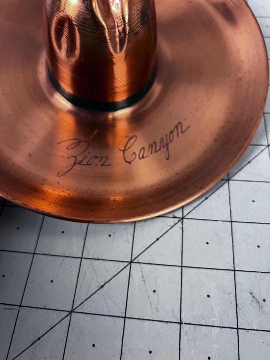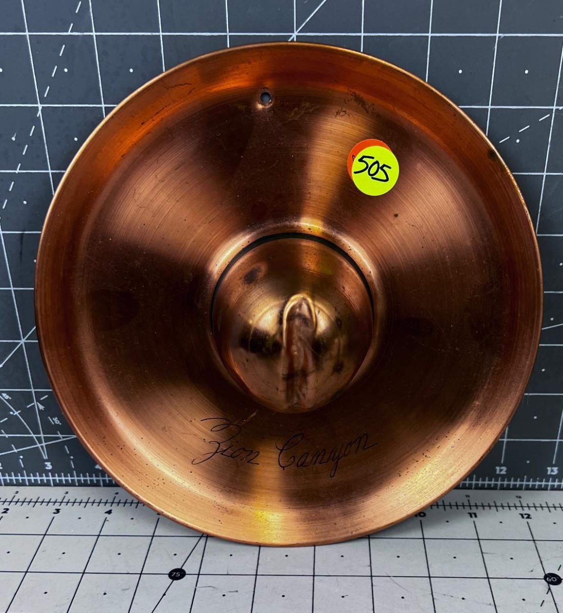 Here is a great vintage souvenir of ZION CANYON in southern Utah...in copper, am 8 3/8" brim western hat designed as a wall hanger..Machined hole for hanging...Circa 1930's-1950's.