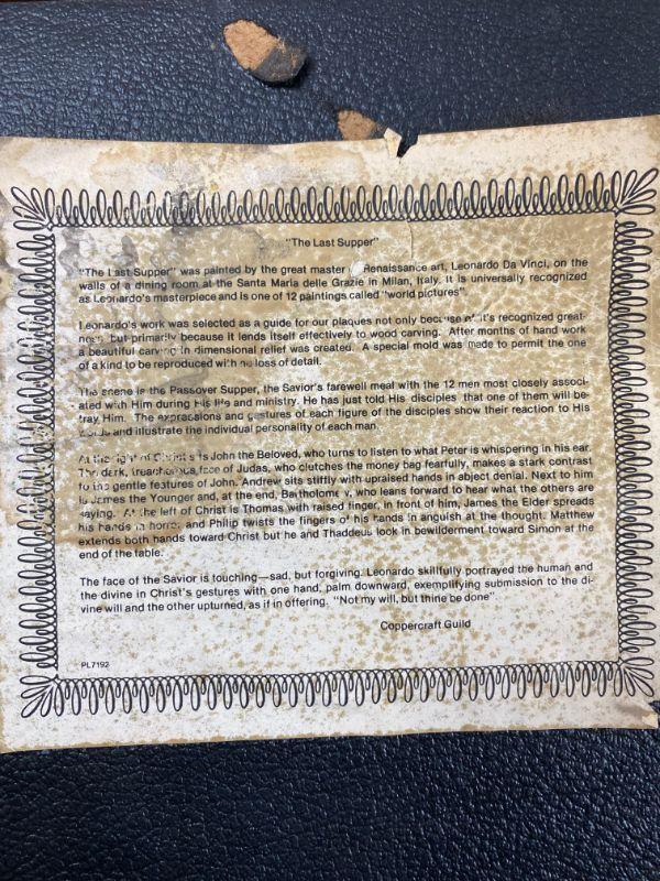 Vintage Coppercraft Guild Leonardo DaVinci The Last Supper Copper 20-1/2" X 10"