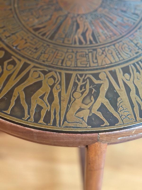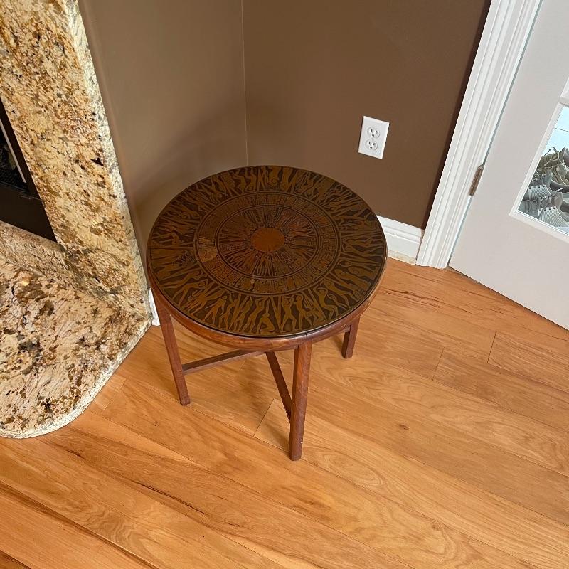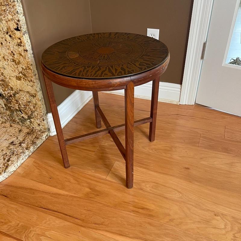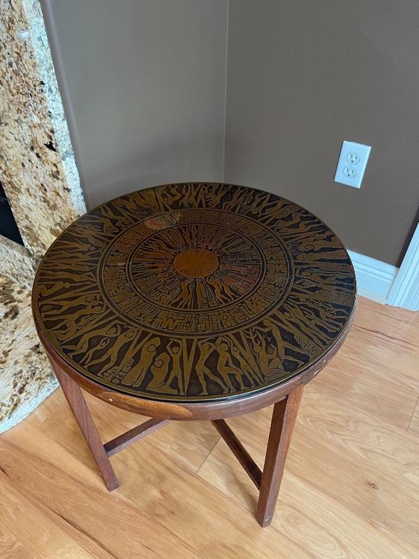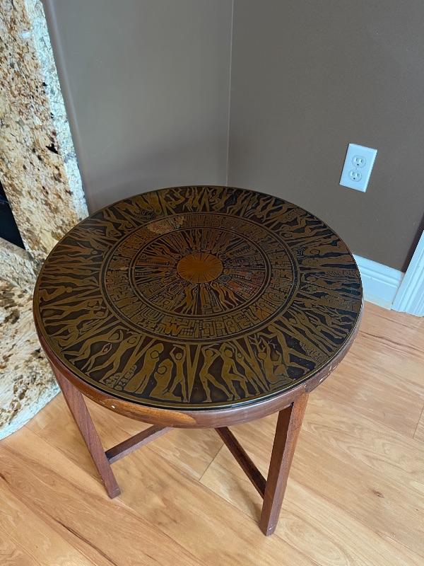 Wood with Copper Decorative Top. Light wear consistent with age and use.