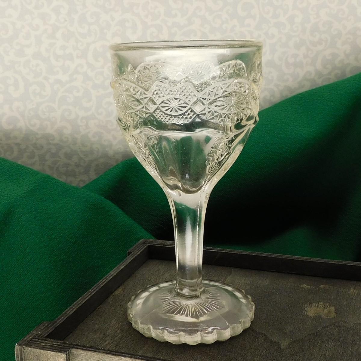 Vintage Cordial Glass, Heavy Glass, Liqueur, Scalloped Base