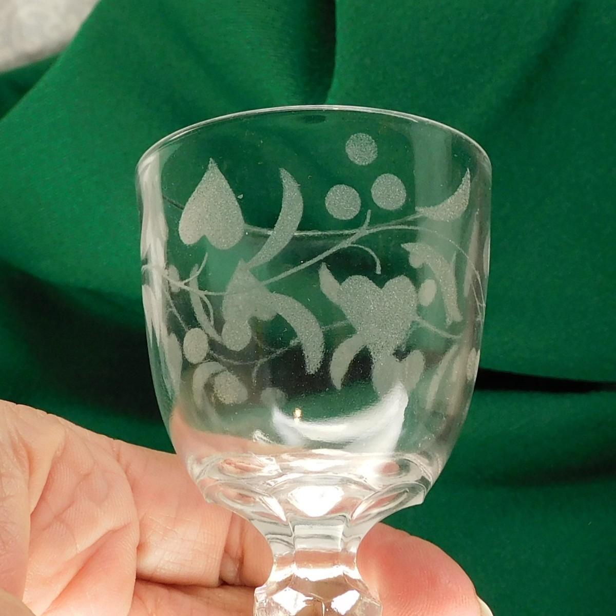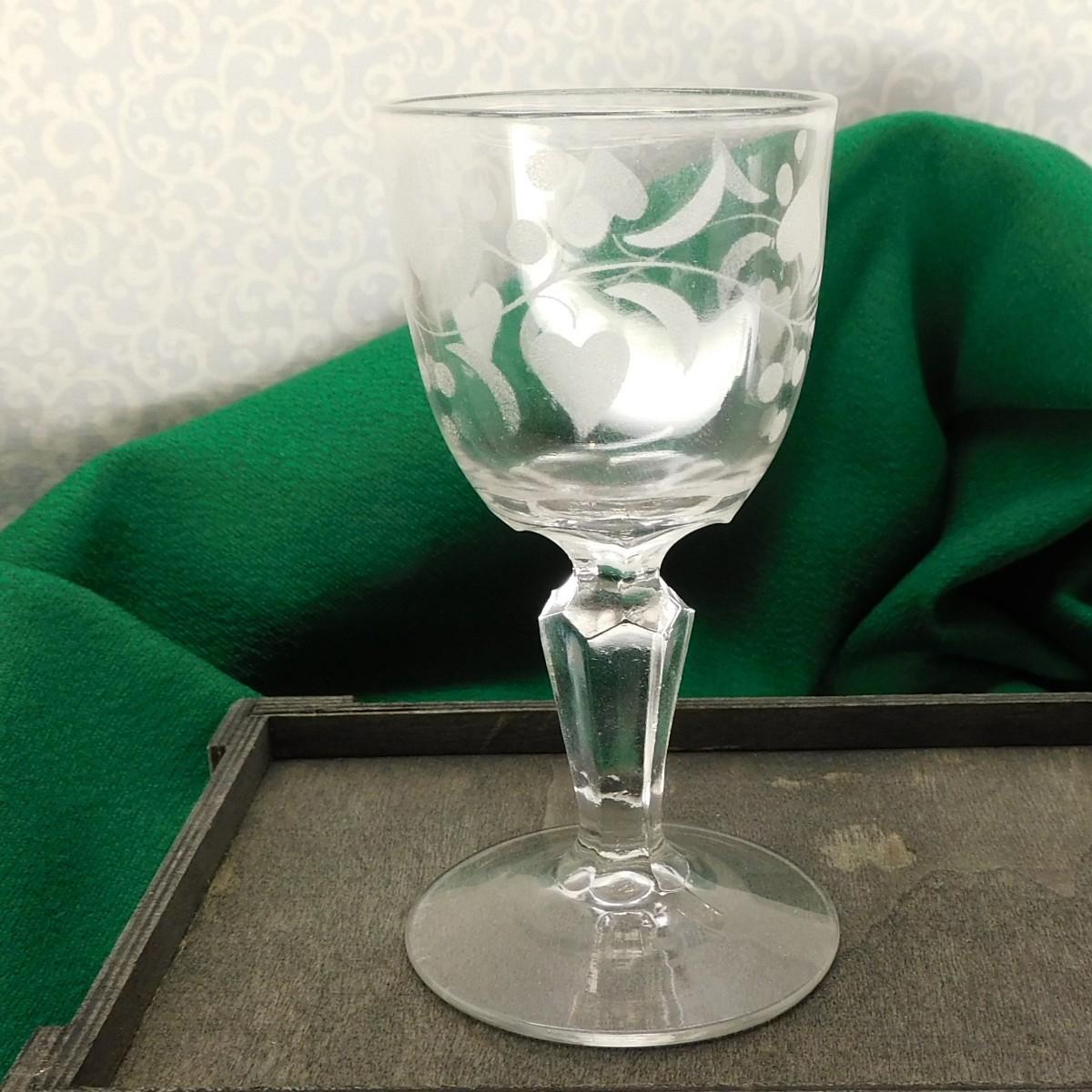 Vintage Cordial Glass, Liqueur, Small Wine Glass, Etched Heart Pattern