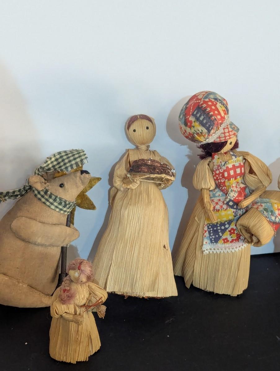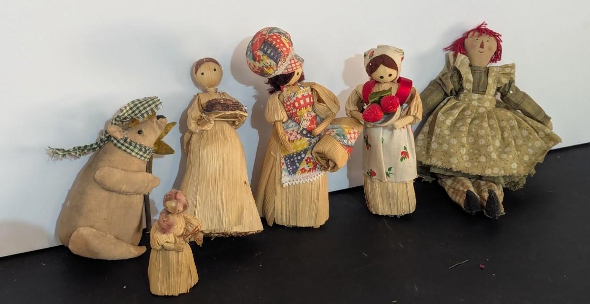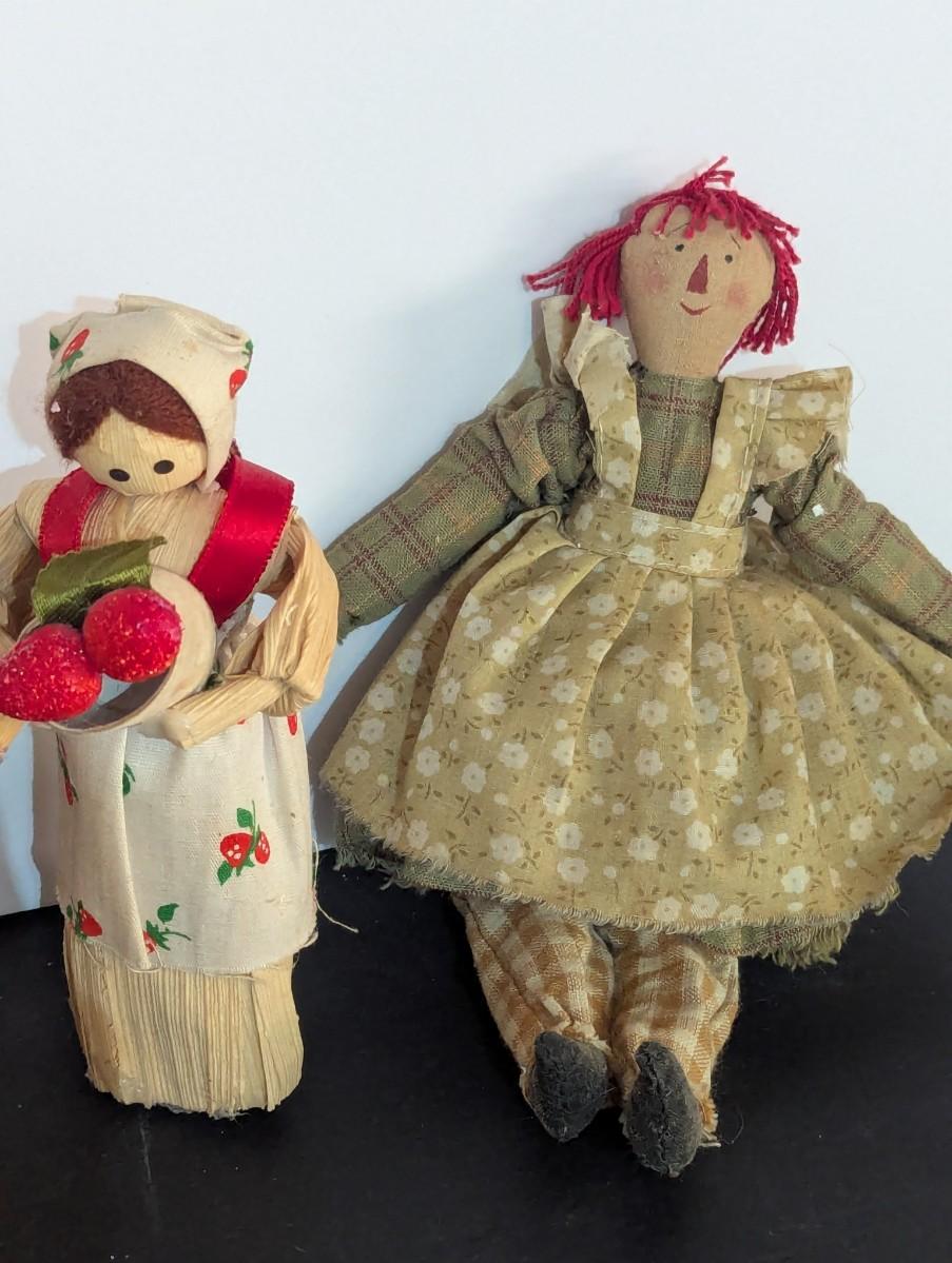 Vintage Corn Husk Dolls & Raggedy Ann Doll