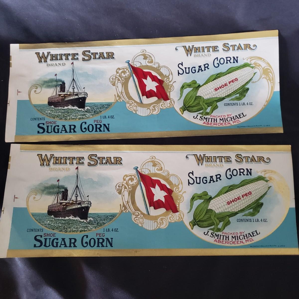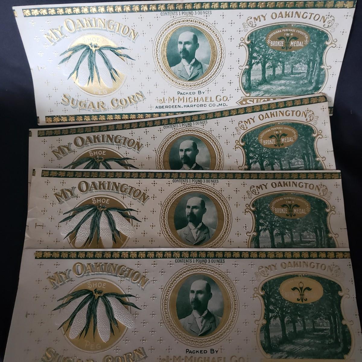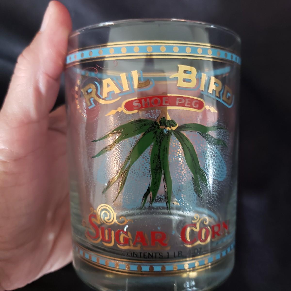 This vintage corn label lot has multiple brand labels and four glasses with a corn label. See pictures for details.