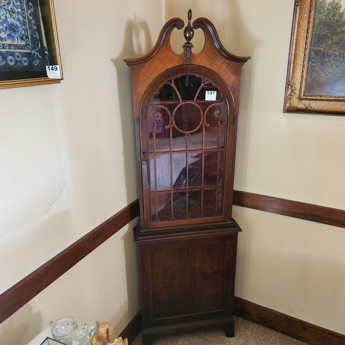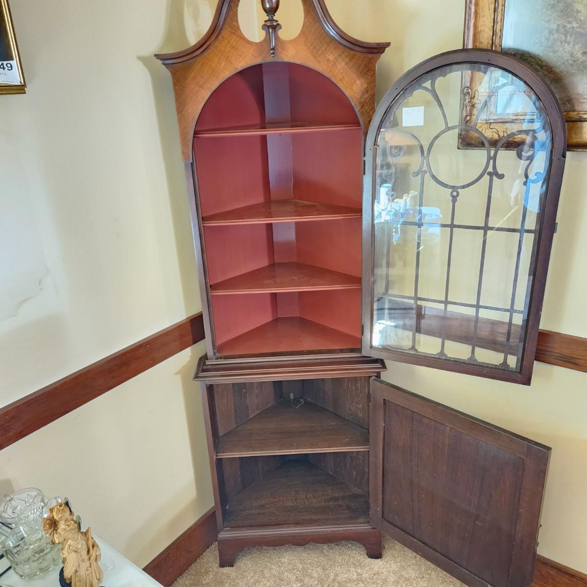 Vintage Corner Cabinet Hutch w Key 23x12x71