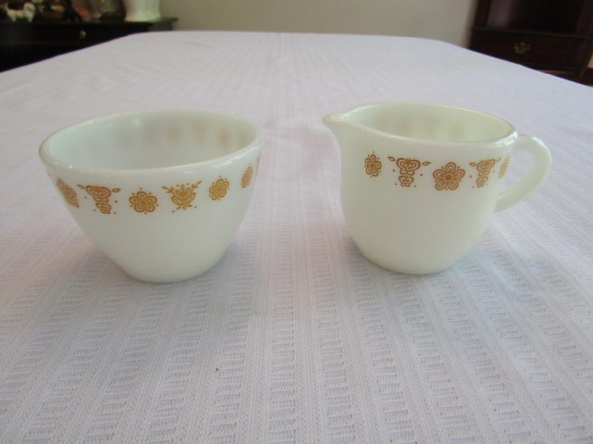 Vintage Corning Creamer and Sugar Bowl- Butterfly Gold Pattern
