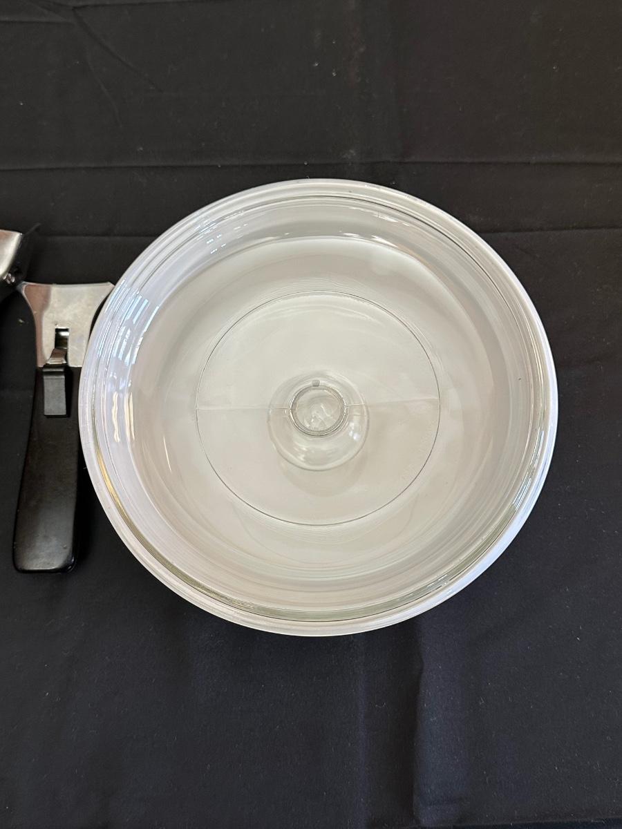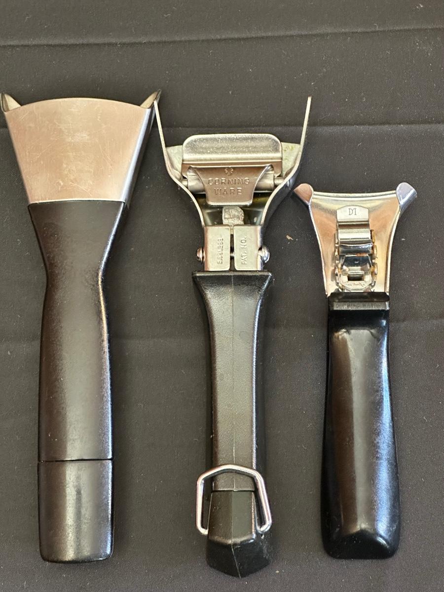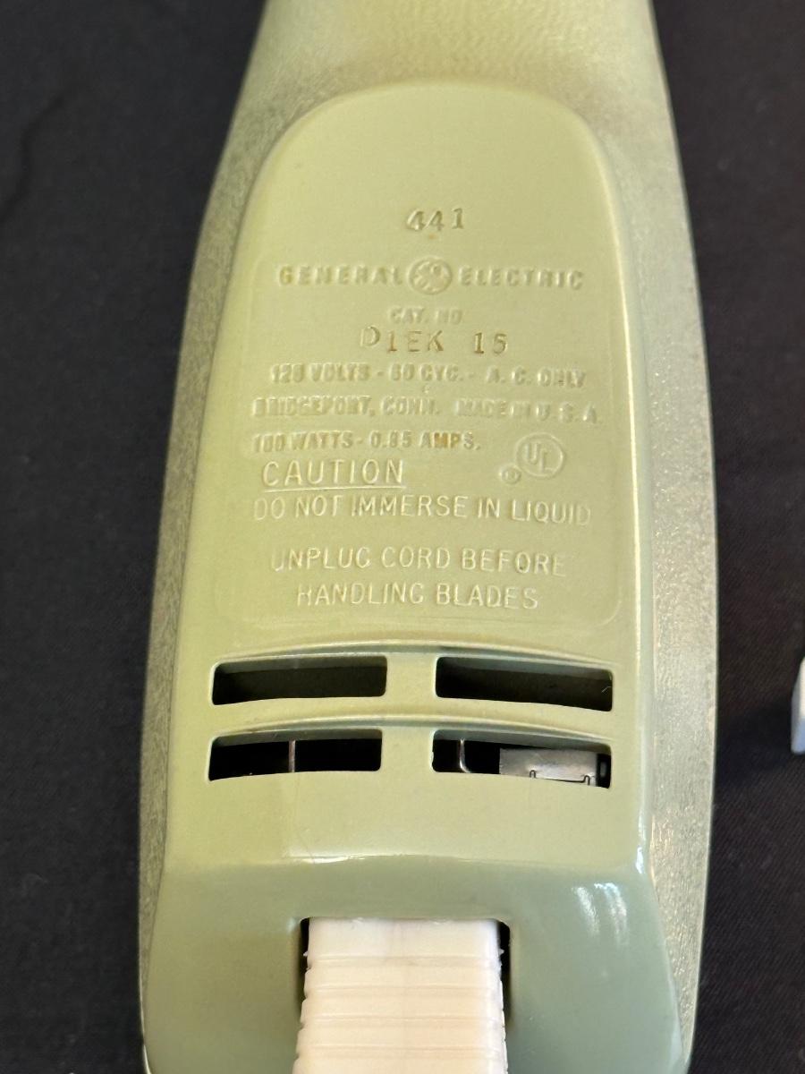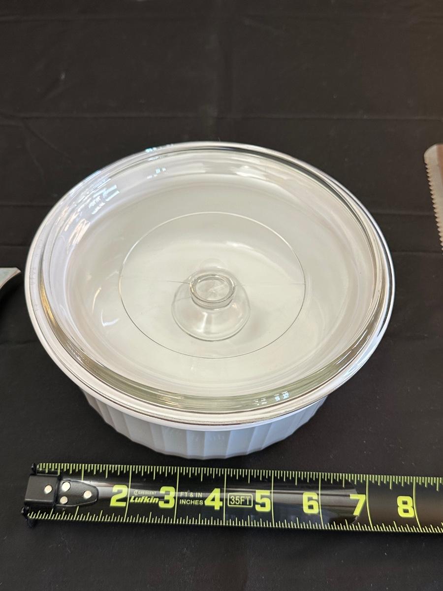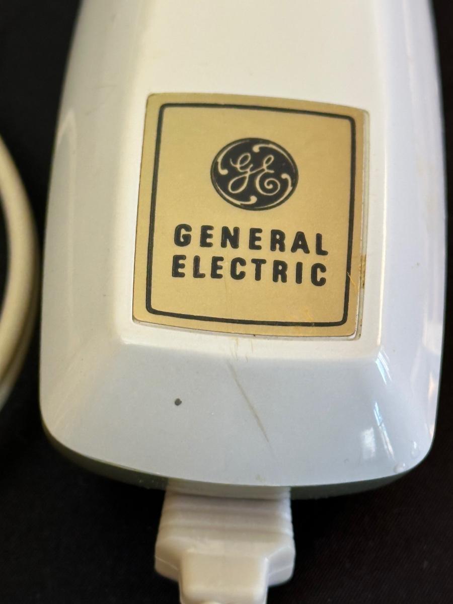 Two Corning Ware Handles and Casserole Dish and a GE Electric Slicing Knife - EK15. The smallest handle is unbranded.