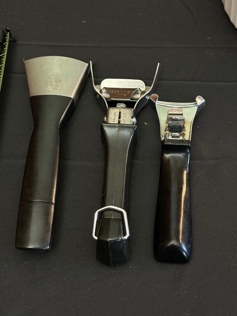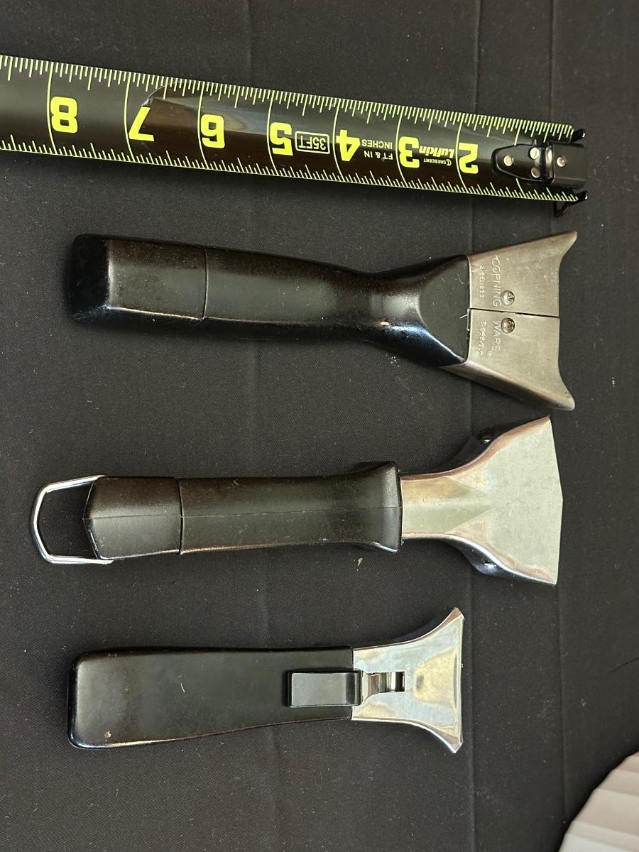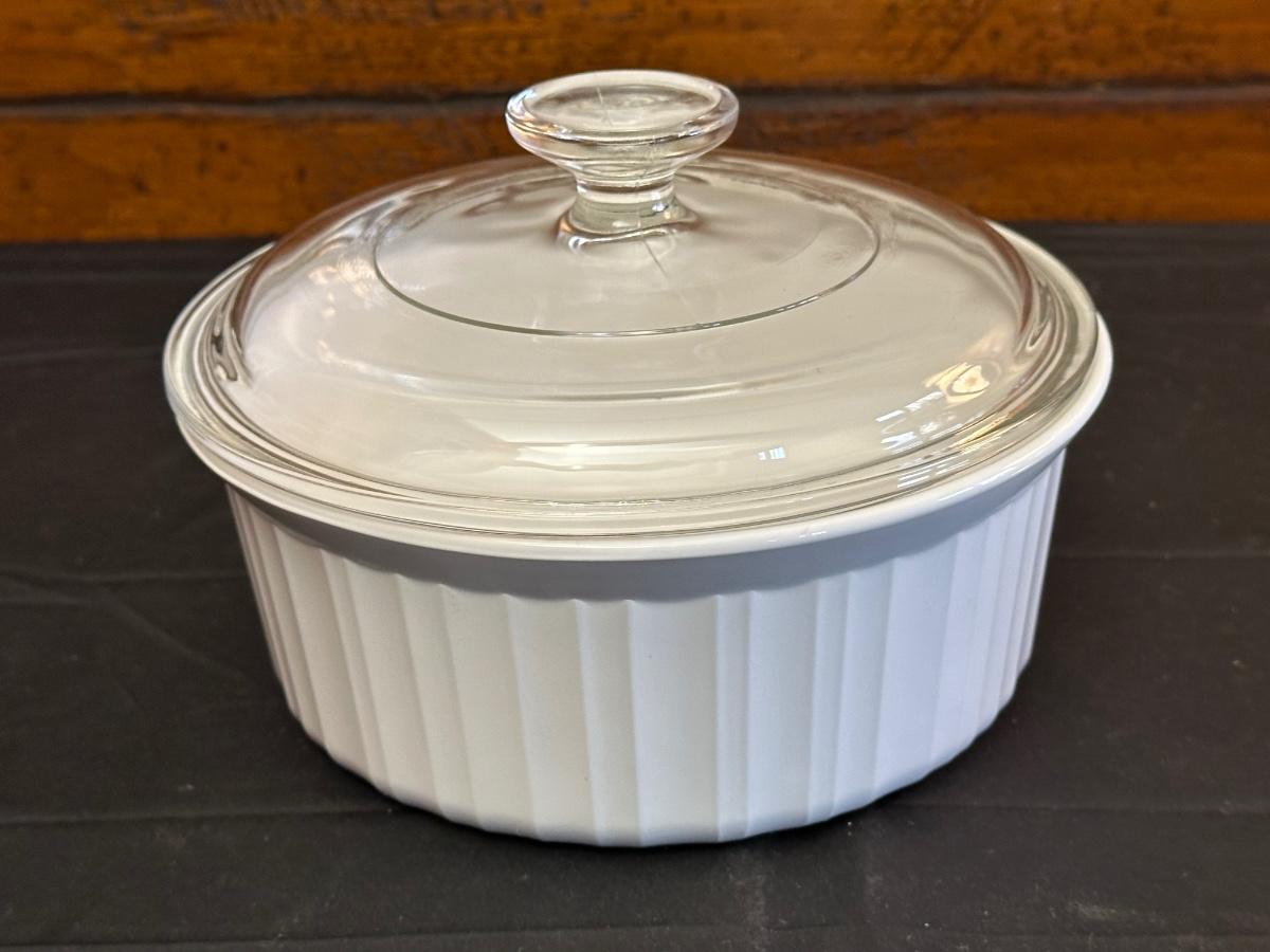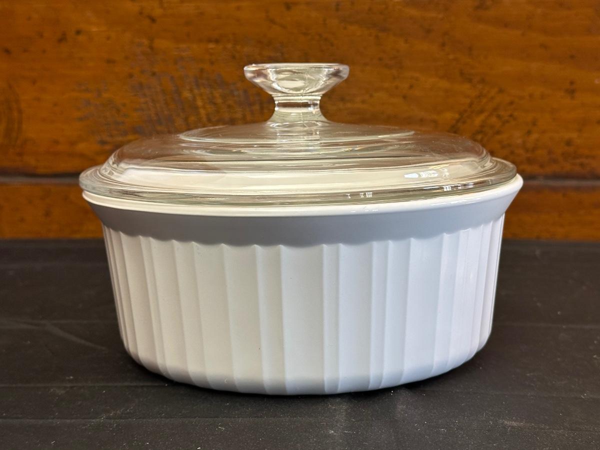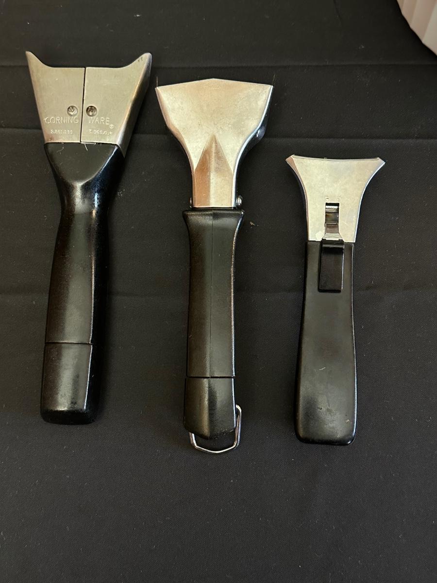 Two Corning Ware Handles and Casserole Dish and a GE Electric Slicing Knife - EK15. The smallest handle is unbranded.