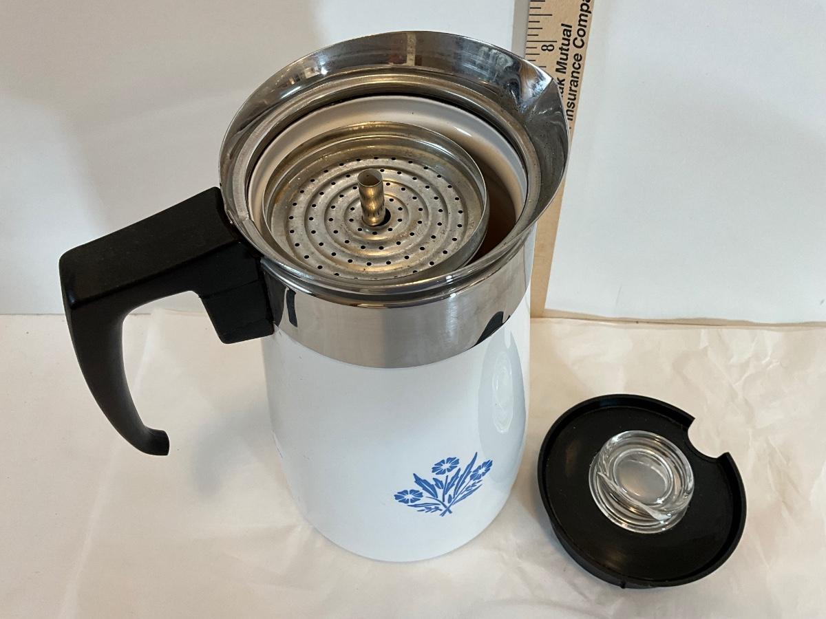 Vintage Corning Ware Blue Cornflower Stove Top Coffee Perculator Pot w/cup