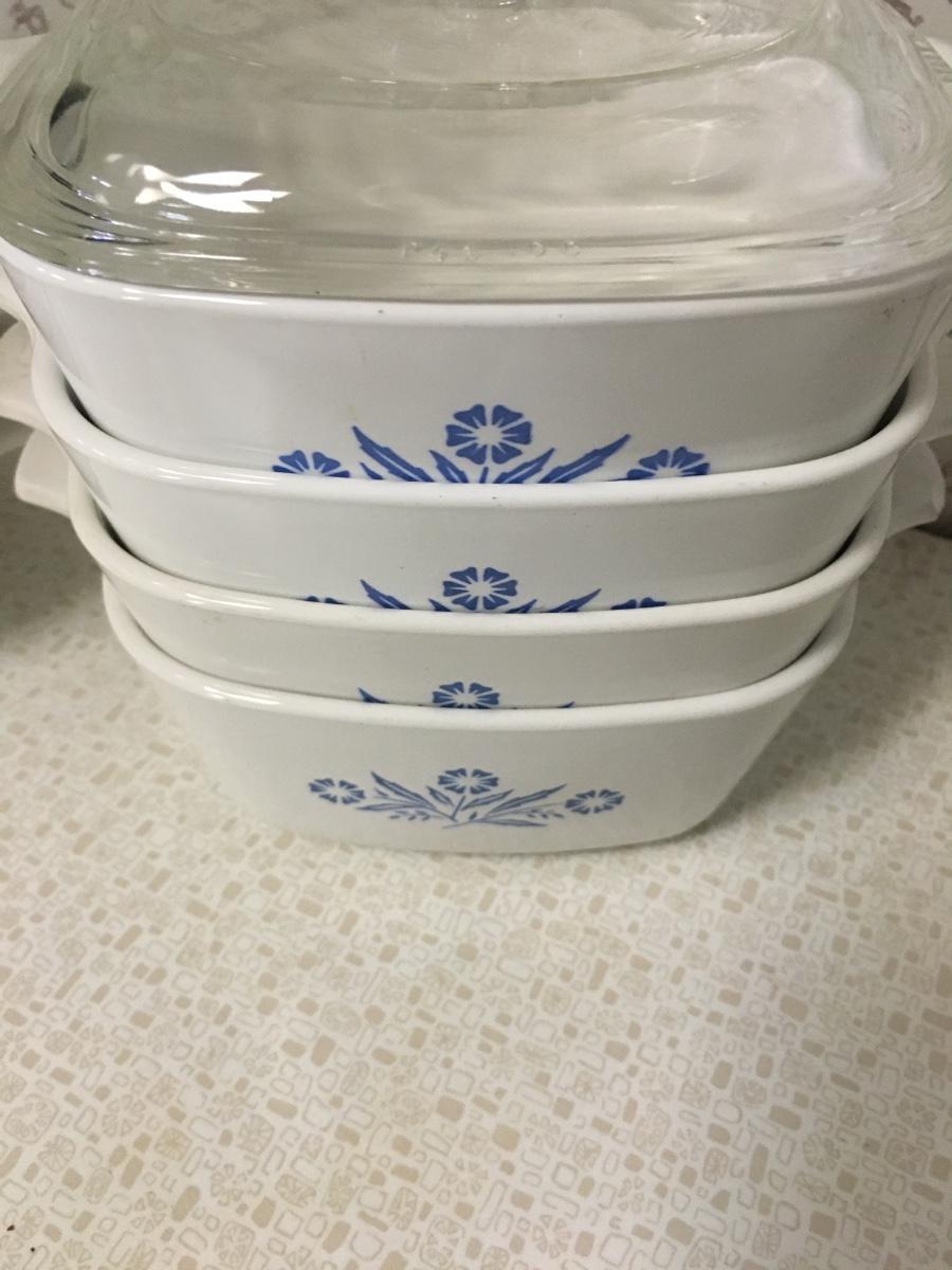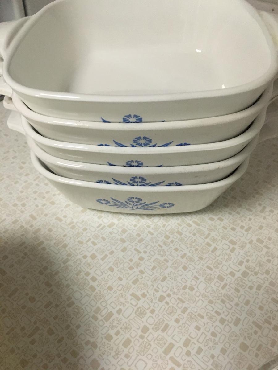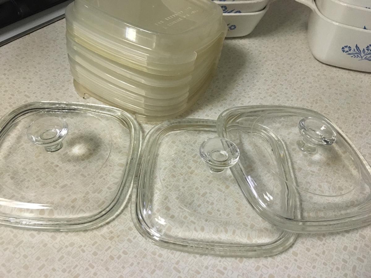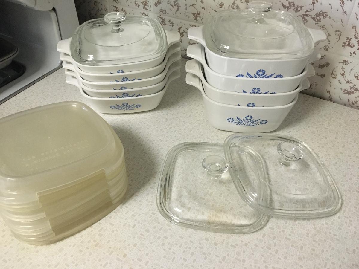 Set of 5 12 oz and 4 22 oz casseroles. Comes with 4 glass lids and 6 plastic refrigerator lids. Excellent condition.