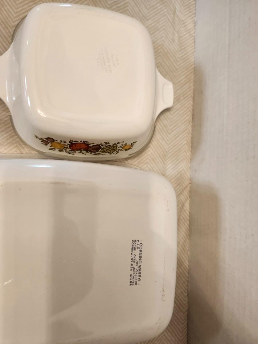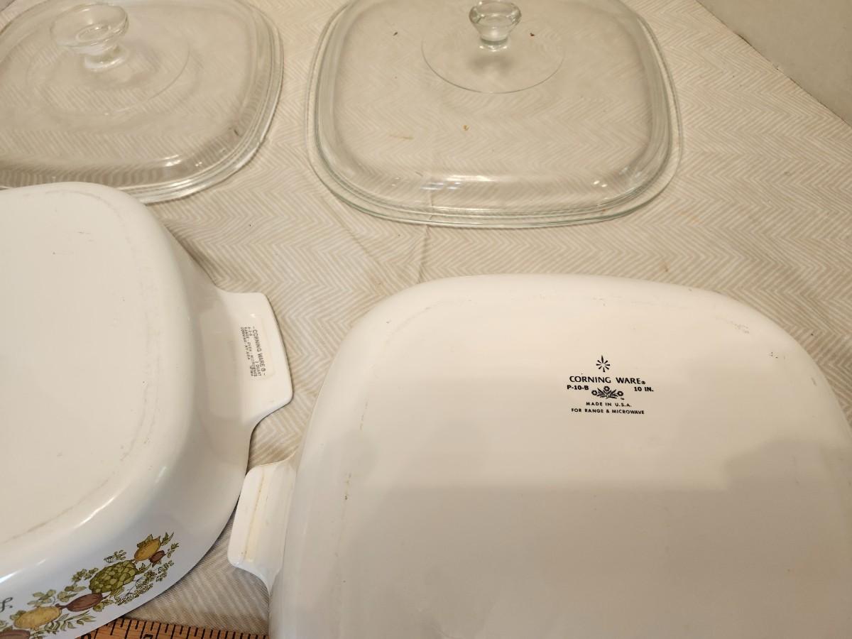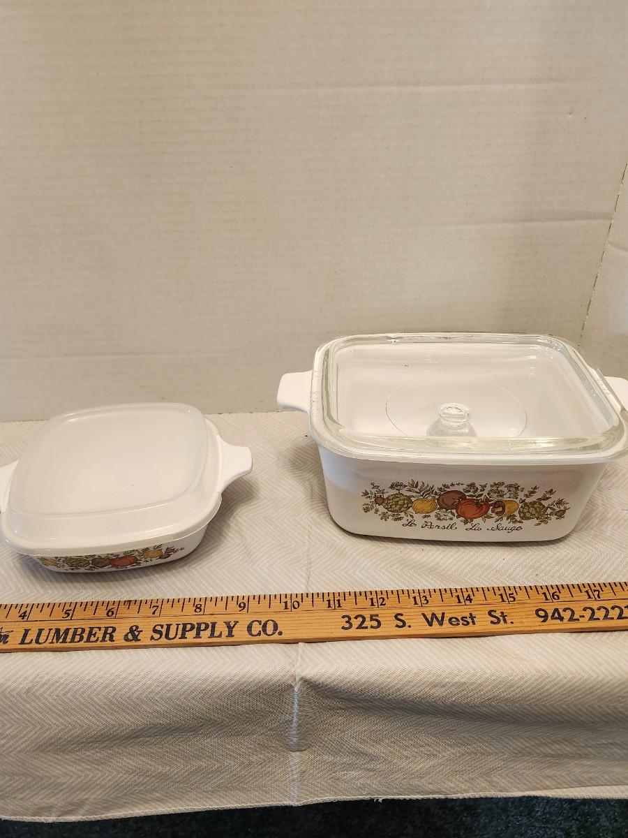 Vintage Corning Ware Spice of three Life La Marjolaine Casserole Dishes with Lids and one Vintage Cornflower Corningware