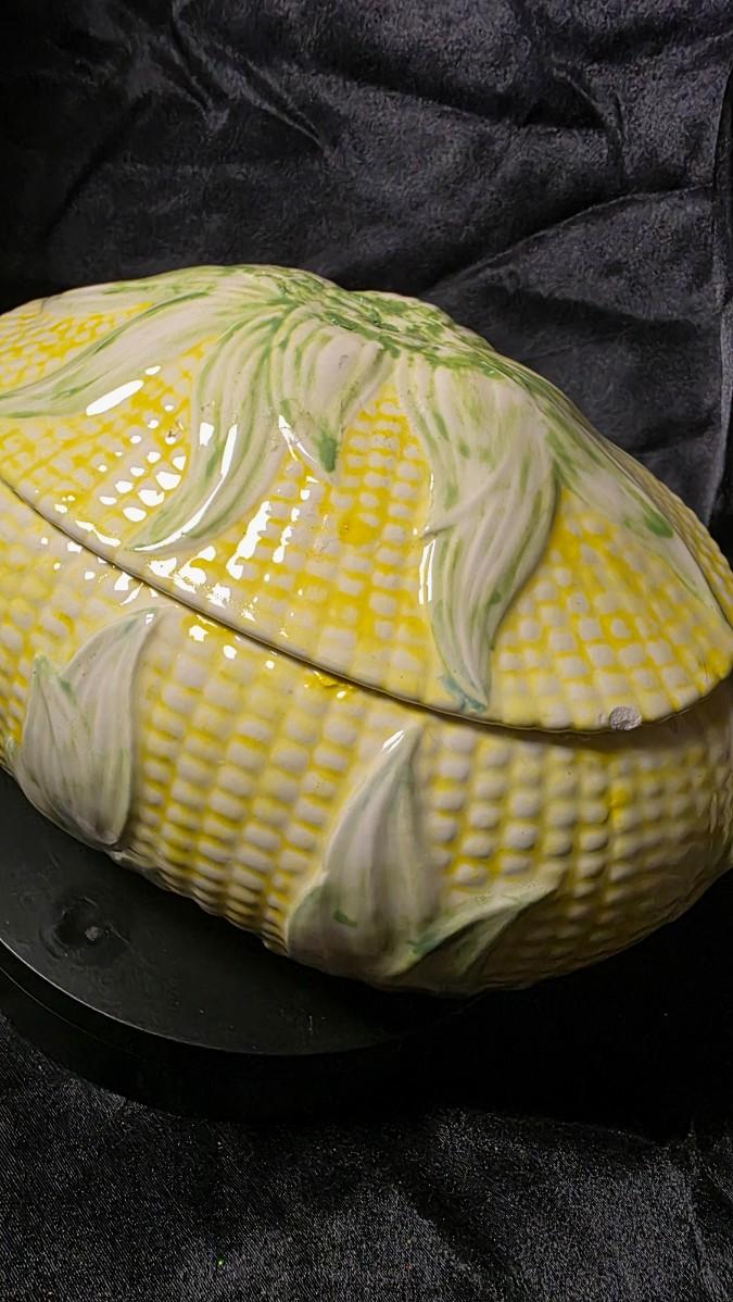 Vintage Corn-on-the-Cob Covered Serving Dish | Mid-Century Ceramic Corn Tureen Americana Kitchen Decor