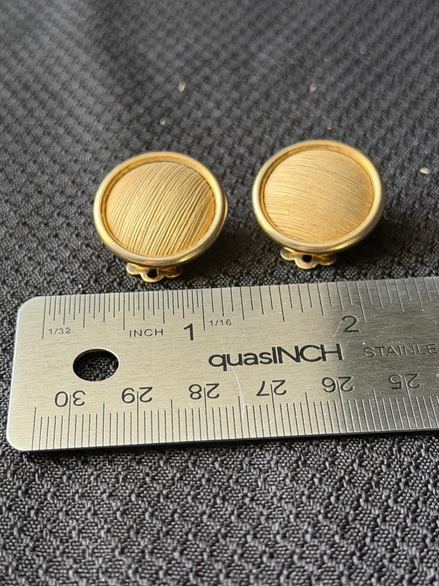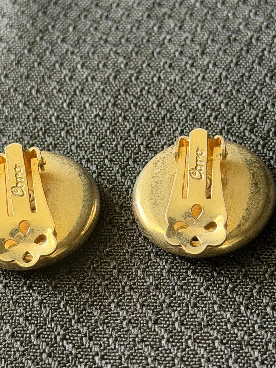 vintage Coro gold-tone button clip-on earrings with a brushed or textured finish.
