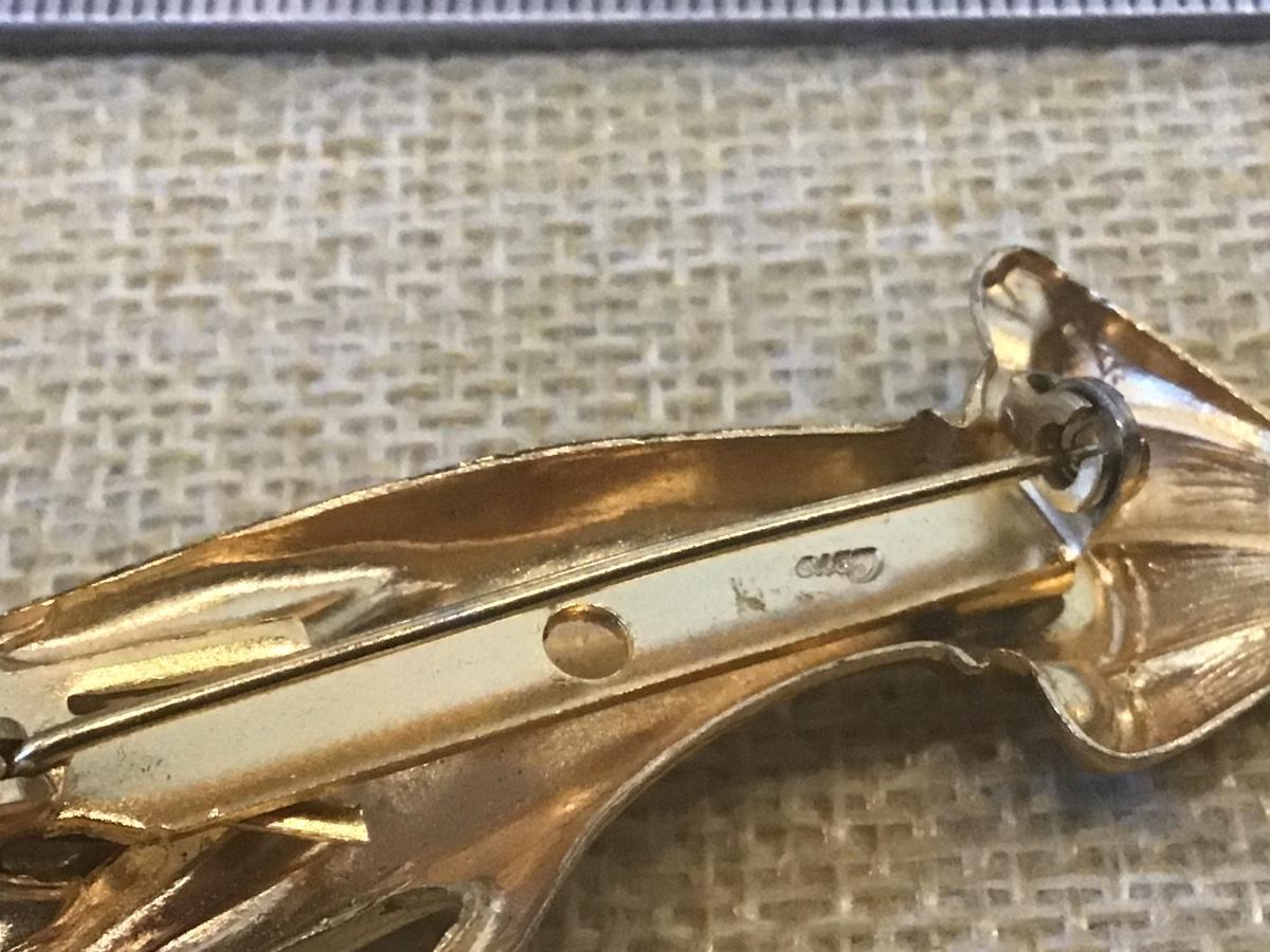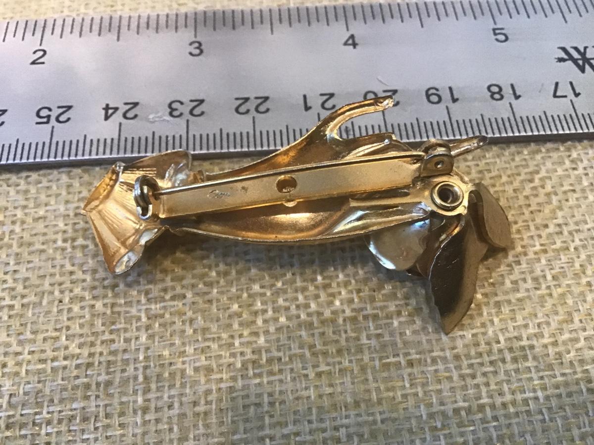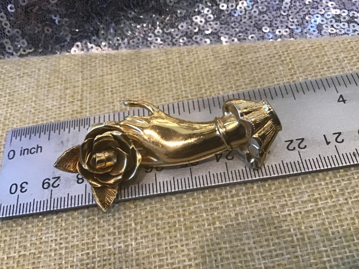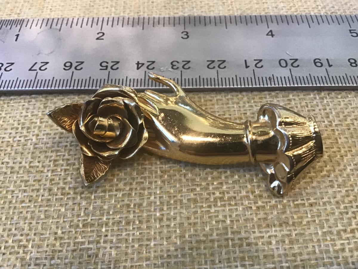 Vintage CORO HAND Pin Brooch Hand Holding Rose Flower Gold Tone
