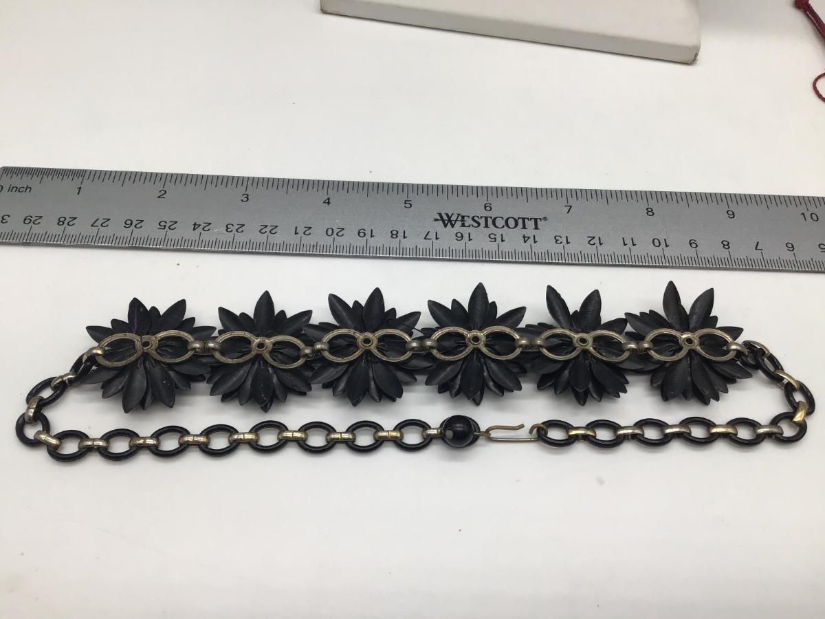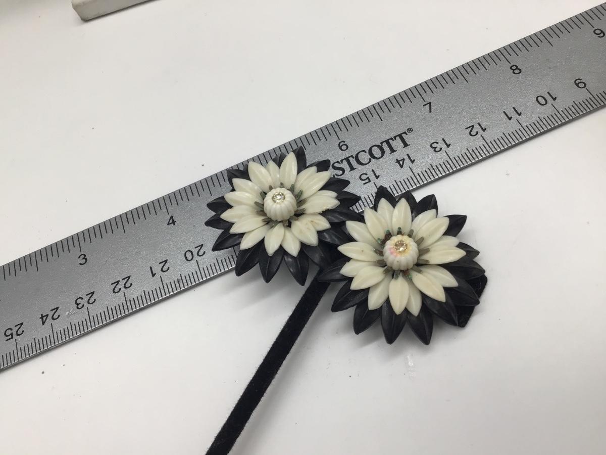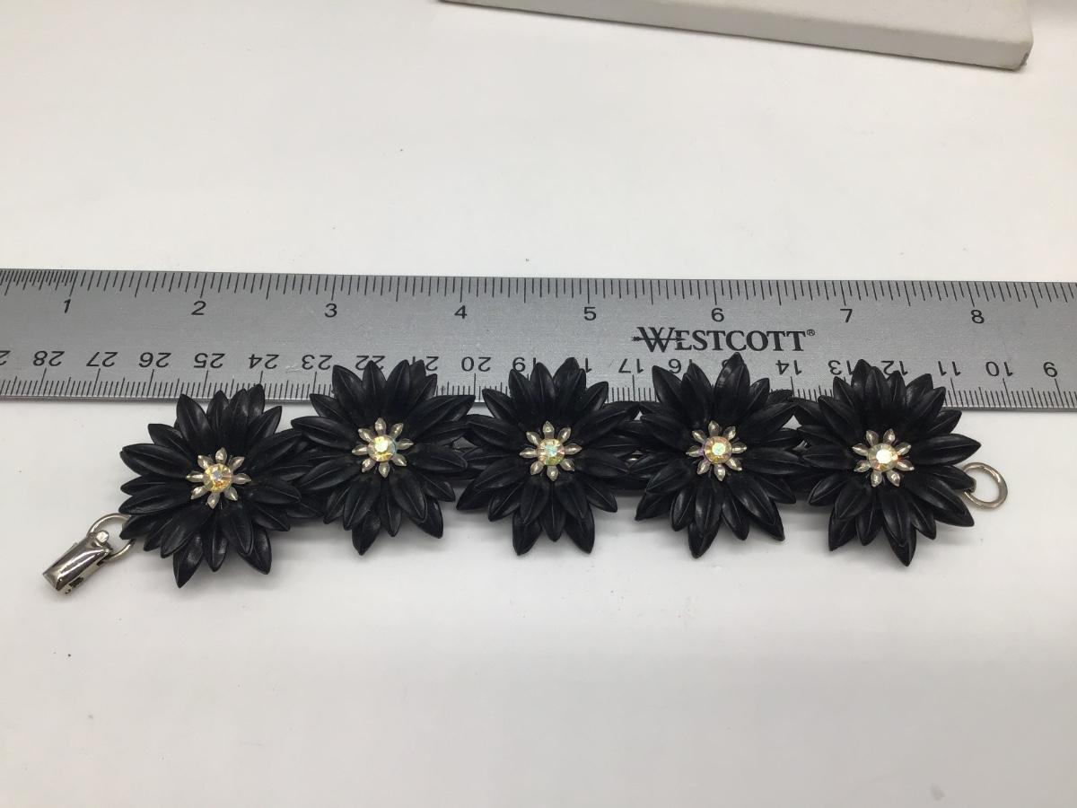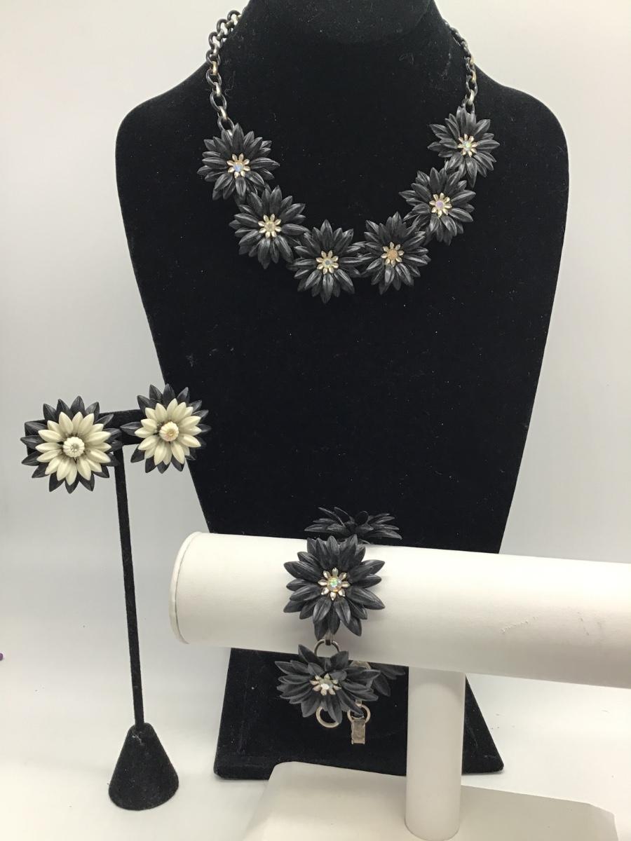 VINTAGE CORO PLASTIC DAISY FLOWER RHINESTONE NECKLACE Bracelet Earrings Set