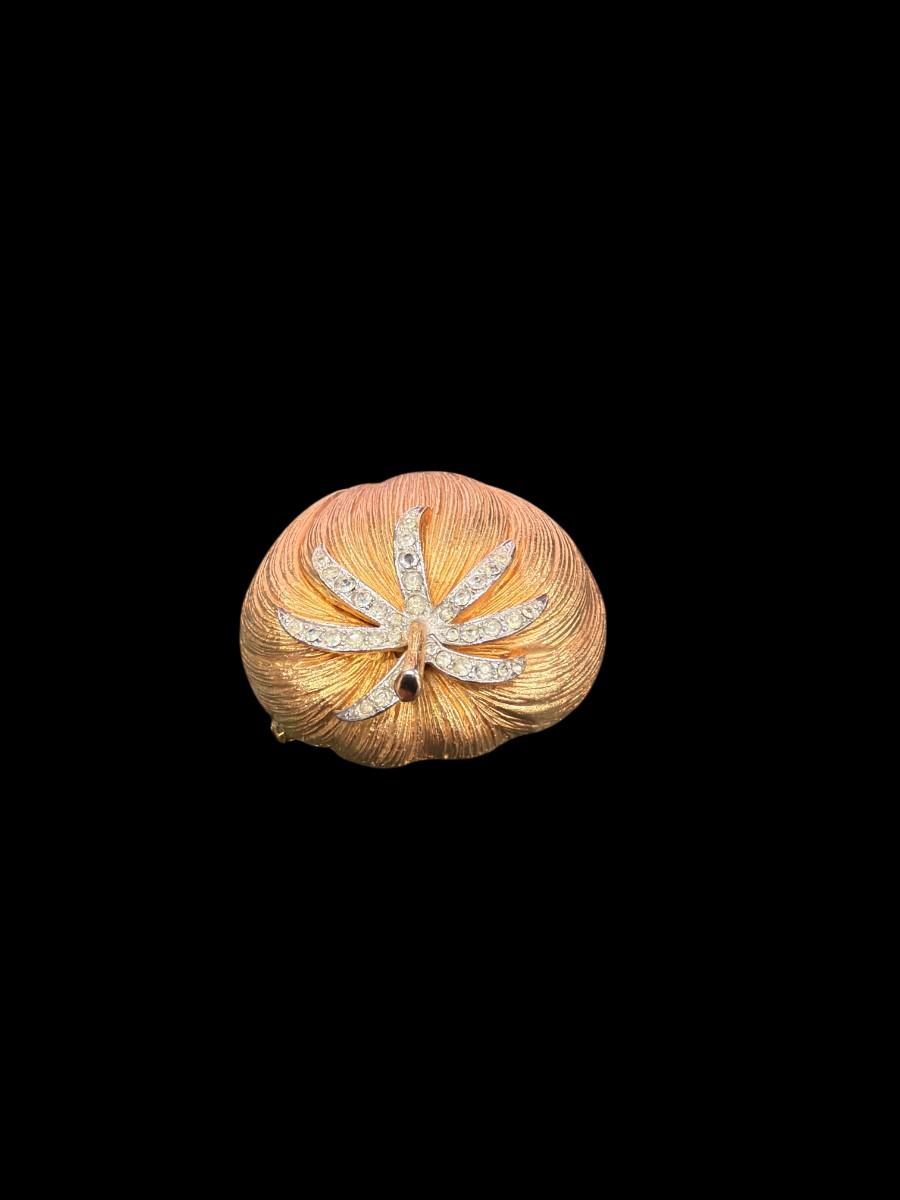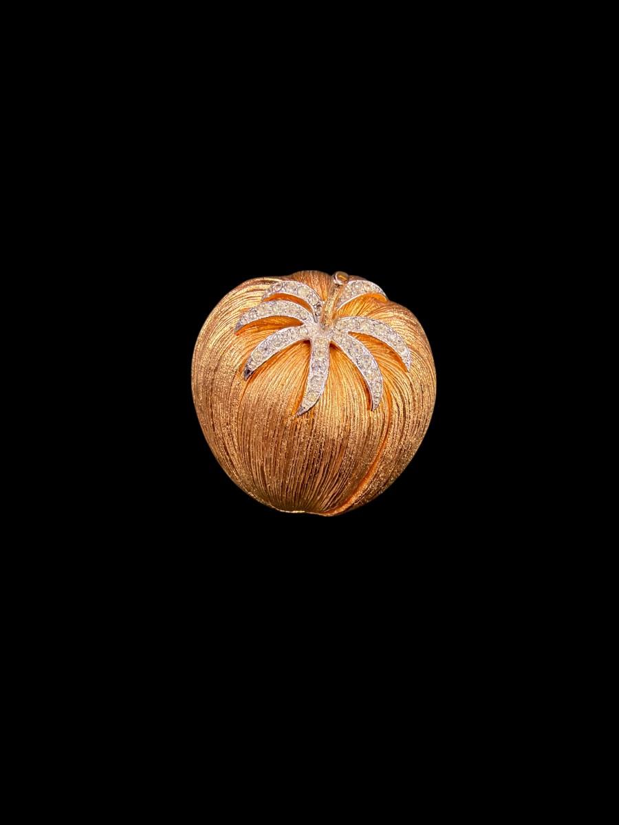 Vintage Corocraft Tomato Rhinestone Pin Brooch. Also known as the Pomme d'Or (Golden Apple) Brooch