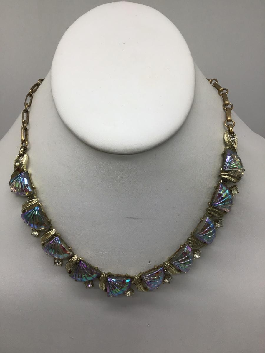 ...Vintage CORO...Gold Tone Lucite Sea Shell Panels Necklace...