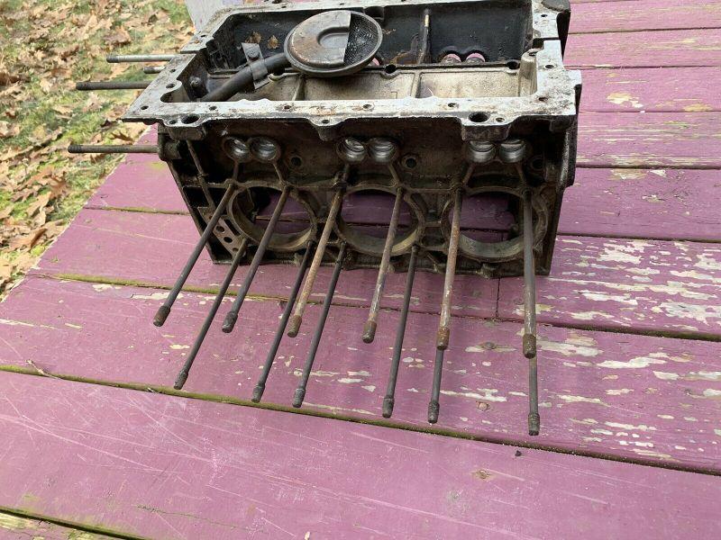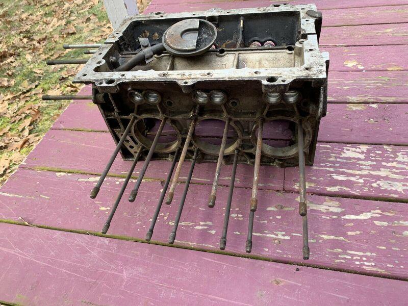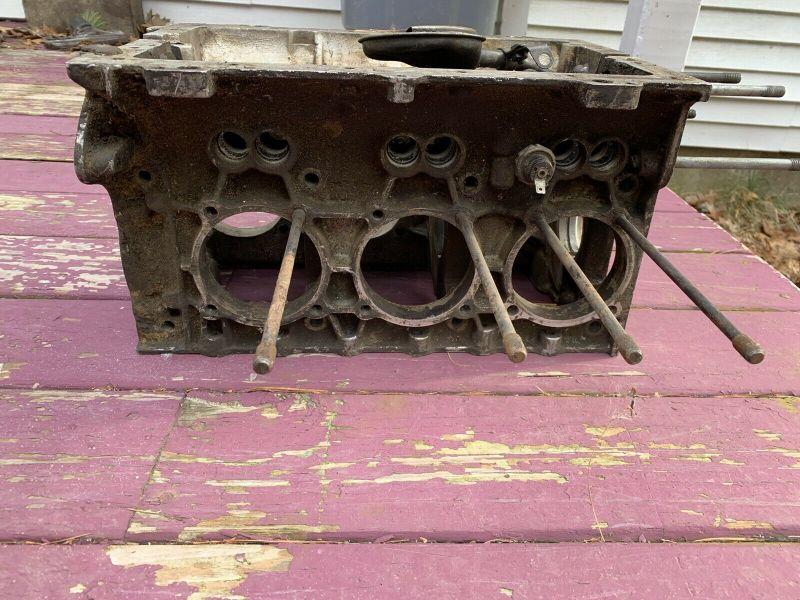 Up fo rauction is this Corvair engine block and pistons. It is stamped L2. This has not been degreased.