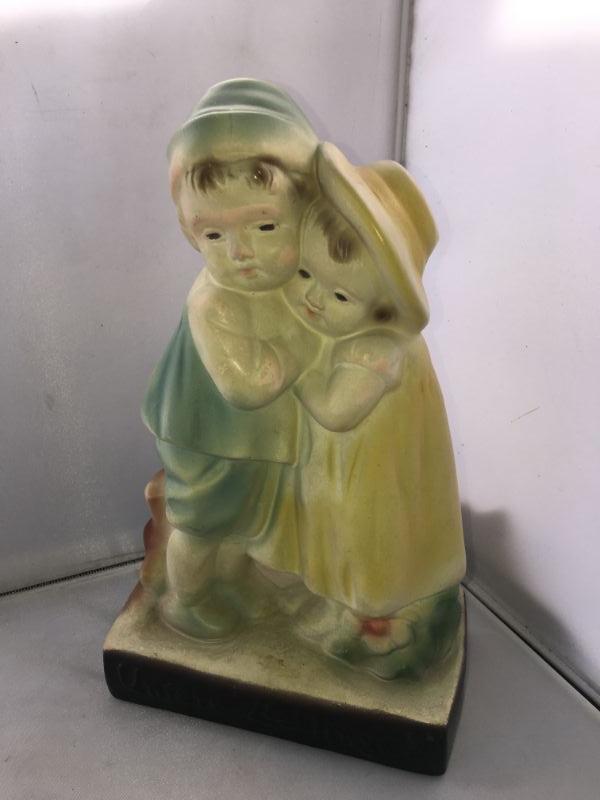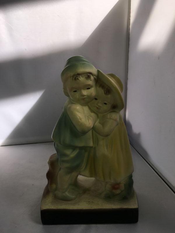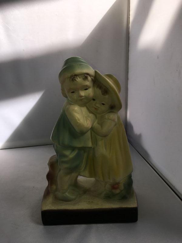 Beautiful two children figurine made of porcelain bisque, measuring 8" in height plust another 1" the stand. Width is 5". In very good or better conditions with no nicks or cracks. Made probably in 1920's or 1930's. nice decorative piece but also a reminder for us of the German art.