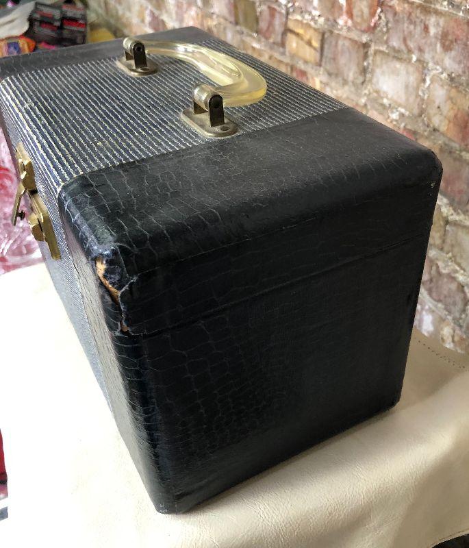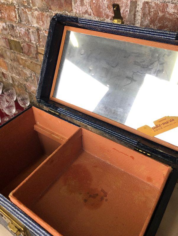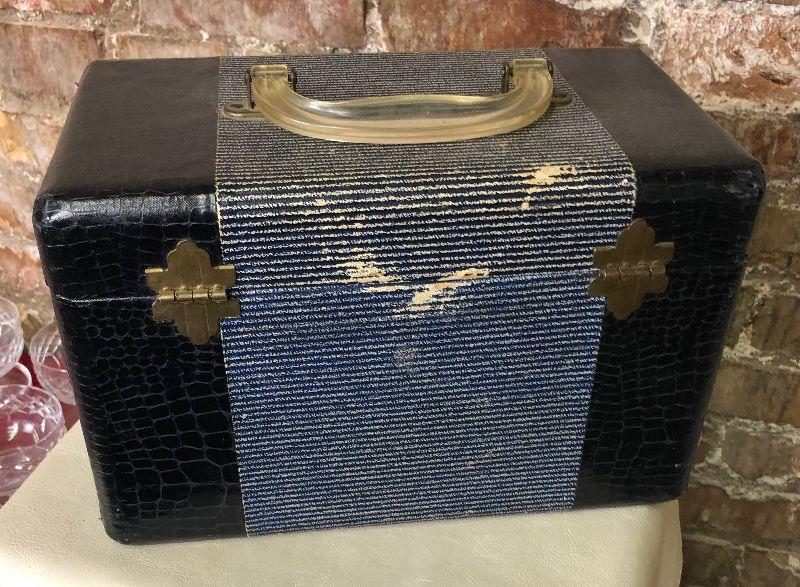 As shown here is a vintage Cosmetics/Travel Case...Some light staining on interior and some wear on the exterior cover...11 x 11 x 7"...