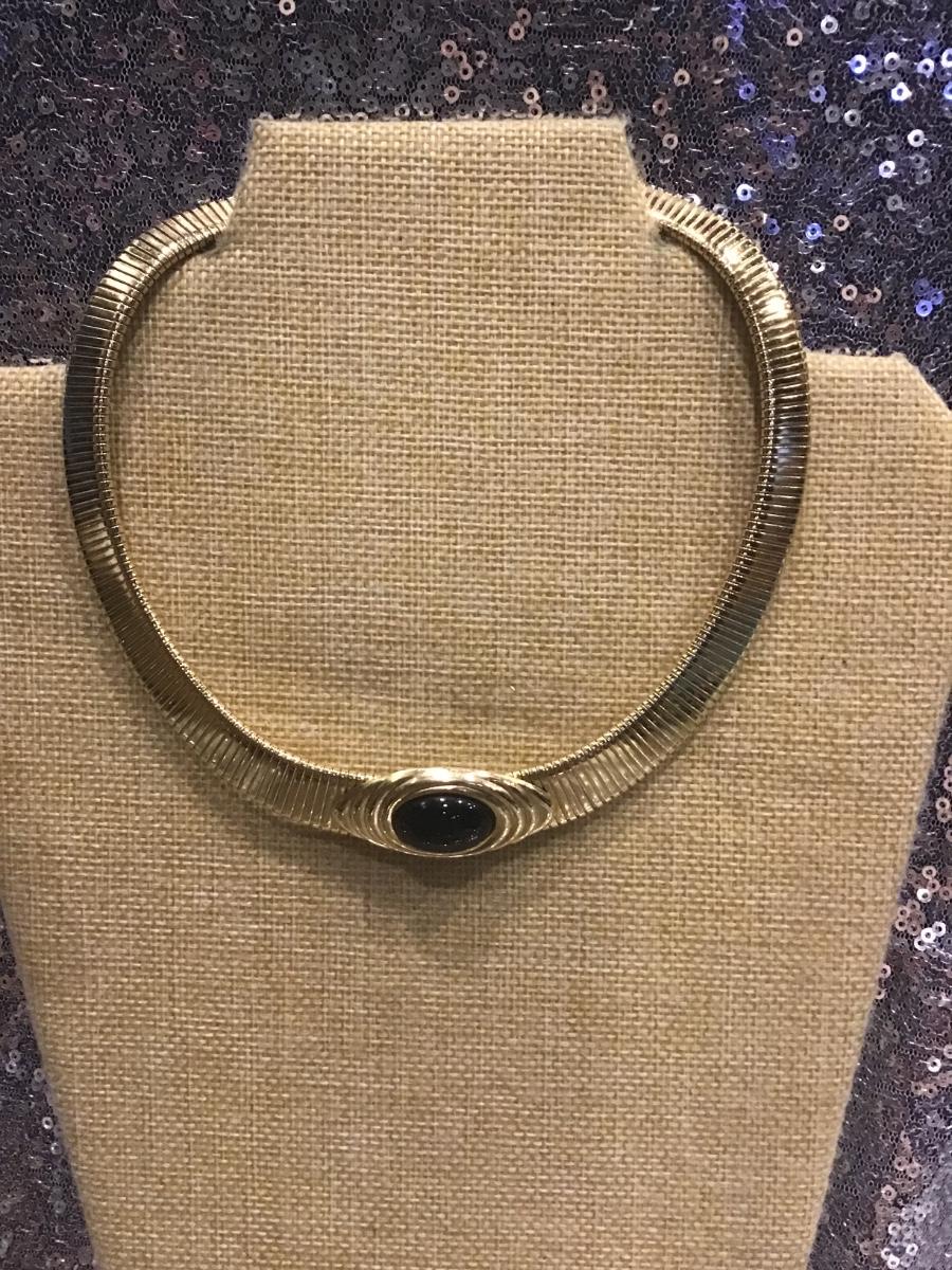 VINTAGE COSTUME GOLD TONE CHOKER PENDANT NECKLACE WOW FLASHY CLASSY NICE