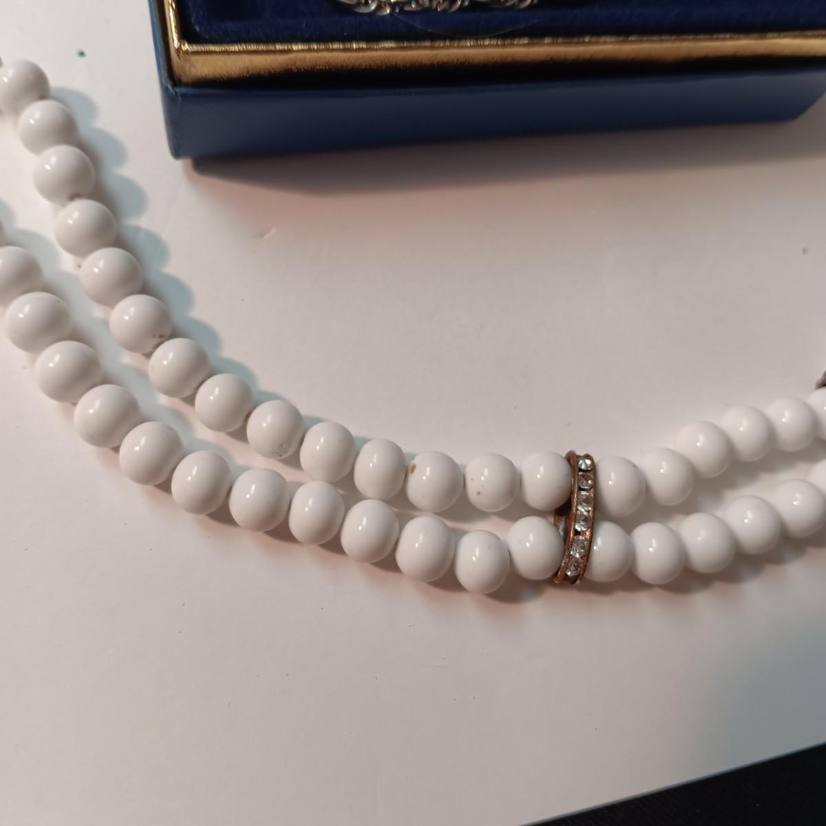 THE WHITE BEADED NECKLACE WILL NEED TO BE REPAIRED NEAR THE CLASPS