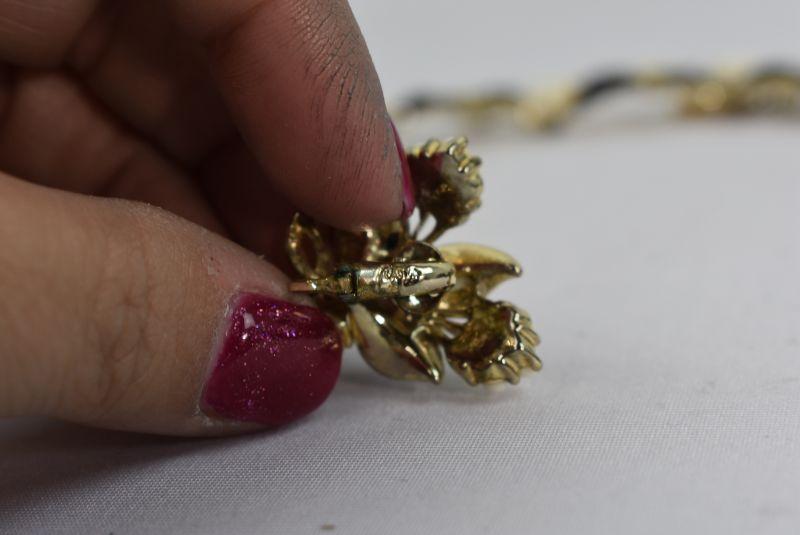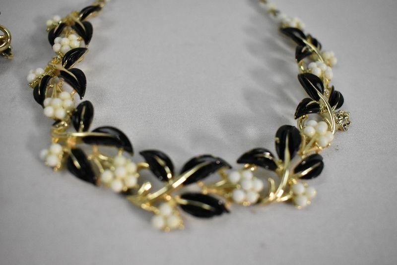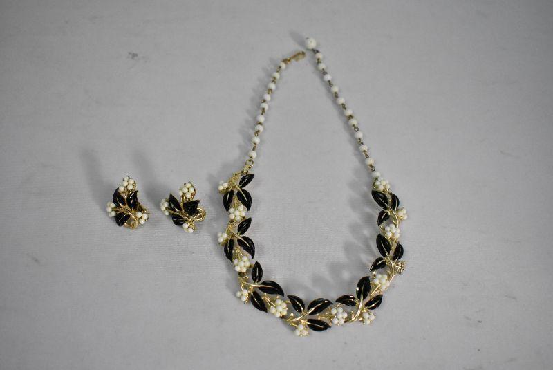 Vintage Costume Jewelry B&W Enamel & Gold Toned Necklace & Clip on earrings. Coro