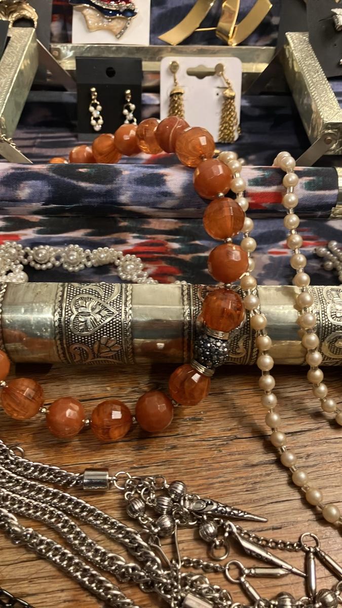 - Variety of styles: floral brooches, dangling earrings, layered necklaces, tassel accents, and unique pendants