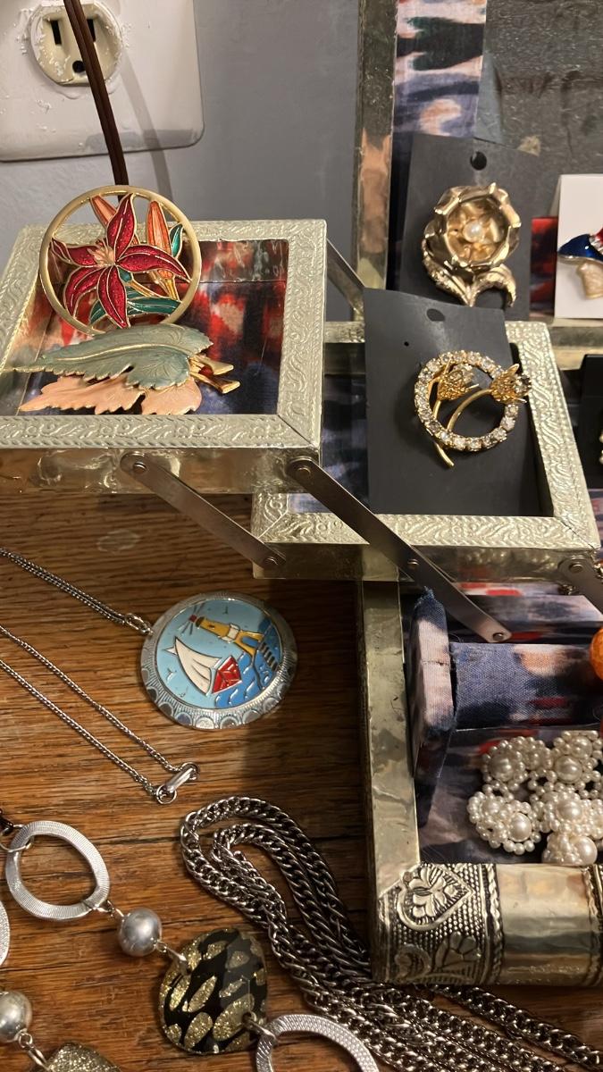 Beautiful curated collection of 22 pieces of vintage wearable costume jewelry, perfect for collectors, resellers, or anyone who loves statement pieces! This lot includes a mix of brooches (several signed by well-known makers), earrings, necklaces, pendants, and more — featuring rhinestones, beads, pearls, bold colors, and classic designs from various eras.